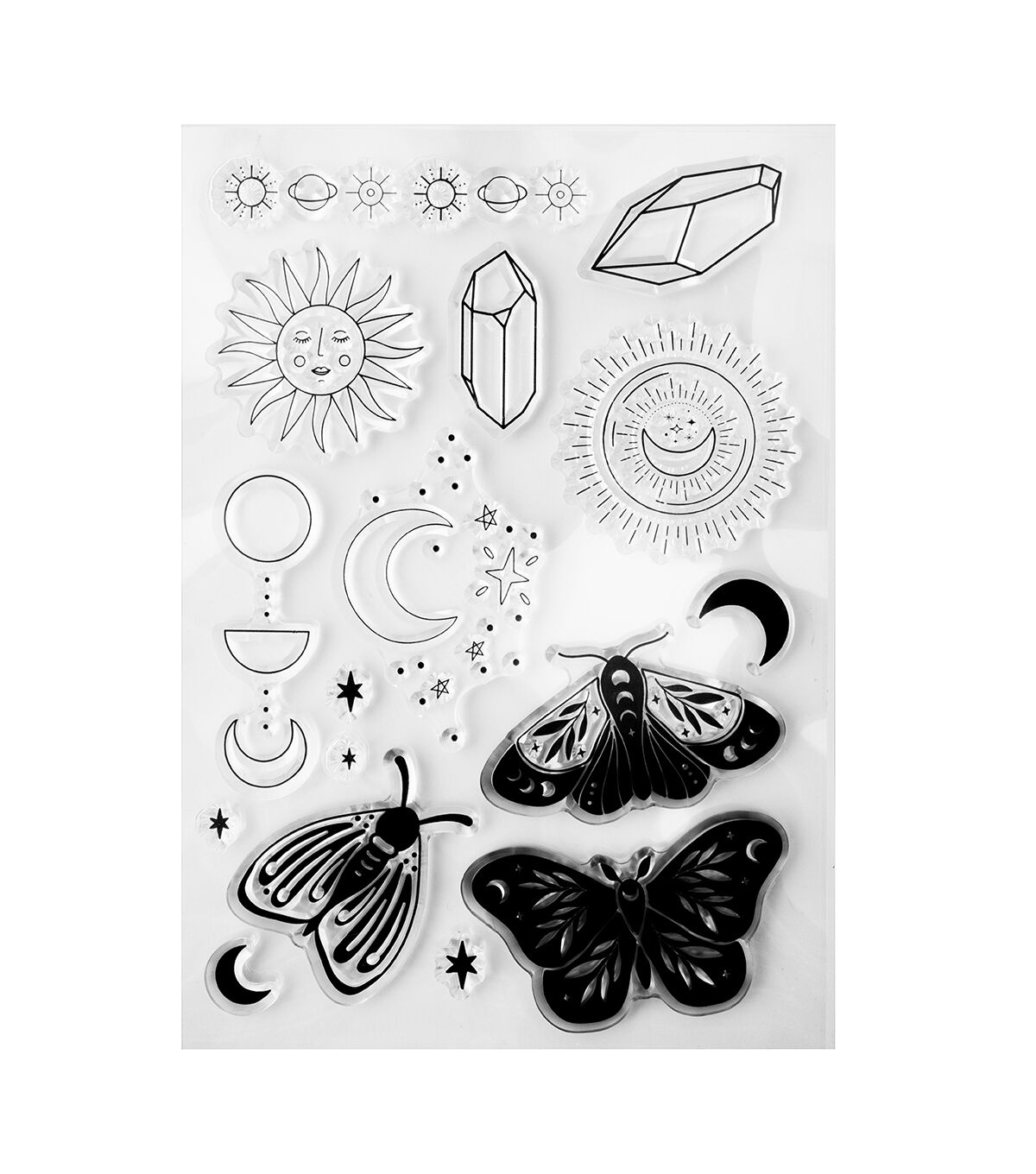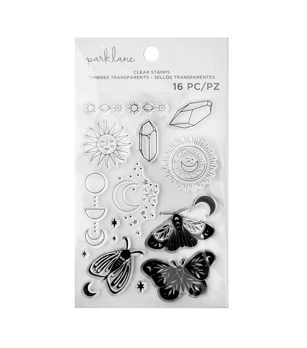 Stamps brighten up any project, large or small! They're a great and easy way to add color to just about anything--cards, scrapbook pages, planners, journals, even home décor, and school and work projects. Just use your favorite colors of inks to customize the look. Peel the stamps from the backer, put them on a stamping block, and stamp away! Park Lane stamps come in a wide variety of sizes and designs to choose from, so mix, match, and collect them all. This package includes 16 clear stamps in the Celestial style.