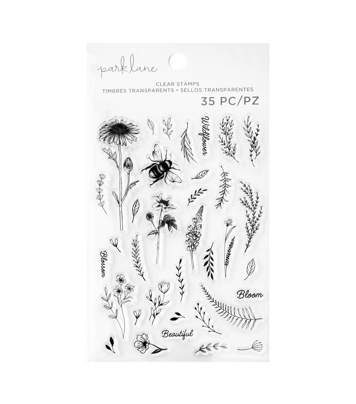 Stamps brighten up any project, large or small! They're a great and easy way to add color to just about anything--cards, scrapbook pages, planners, journals, even home décor, and school and work projects. Just use your favorite colors of inks to customize the look. Peel the stamps from the backer, put them on a stamping block, and stamp away! Park Lane stamps come in a wide variety of sizes and designs to choose from, so mix, match, and collect them all. This package includes 34 clear stamps in the Wildflowers style.