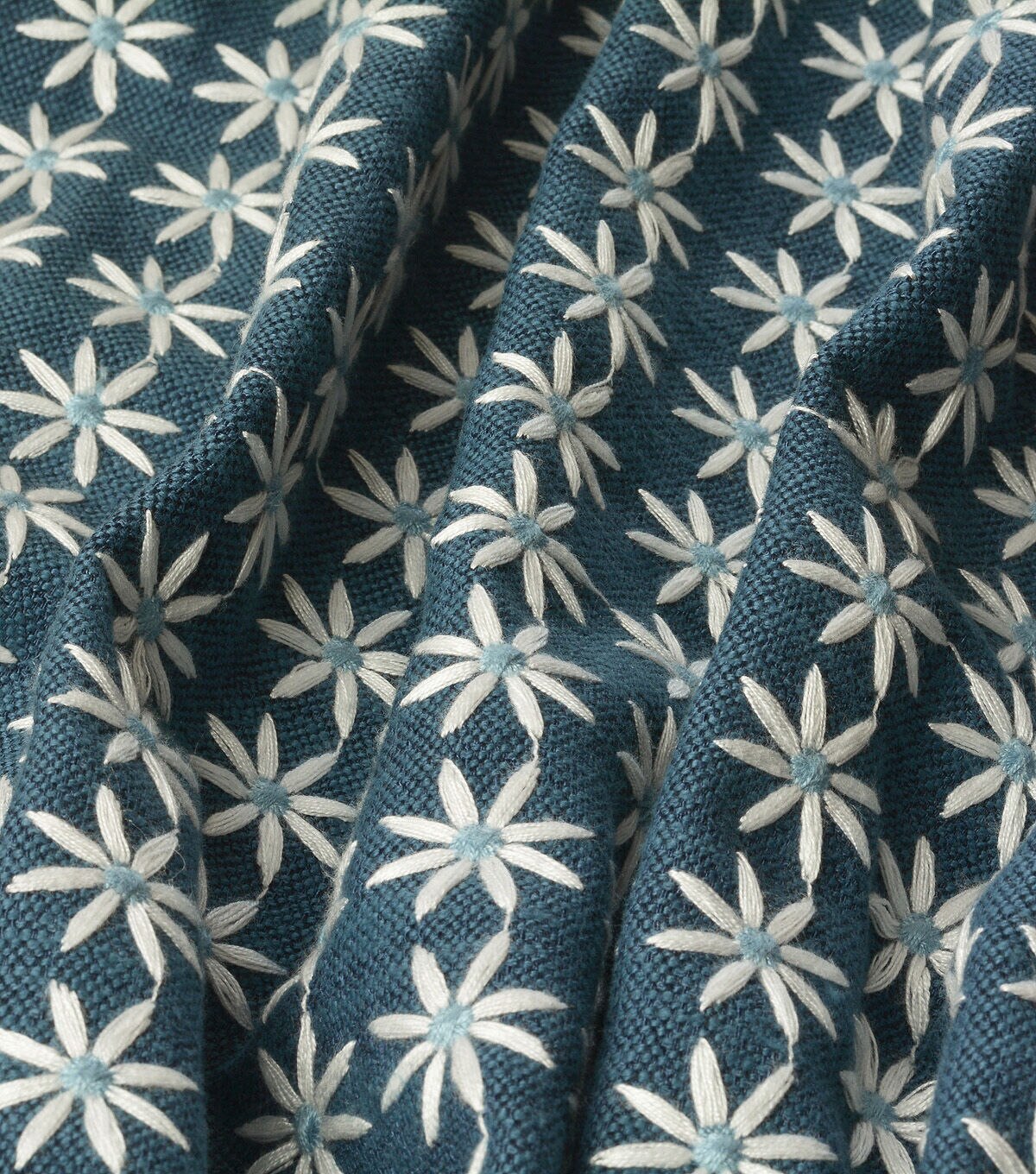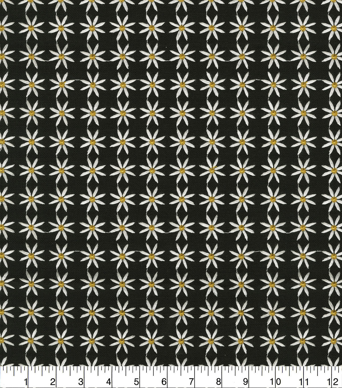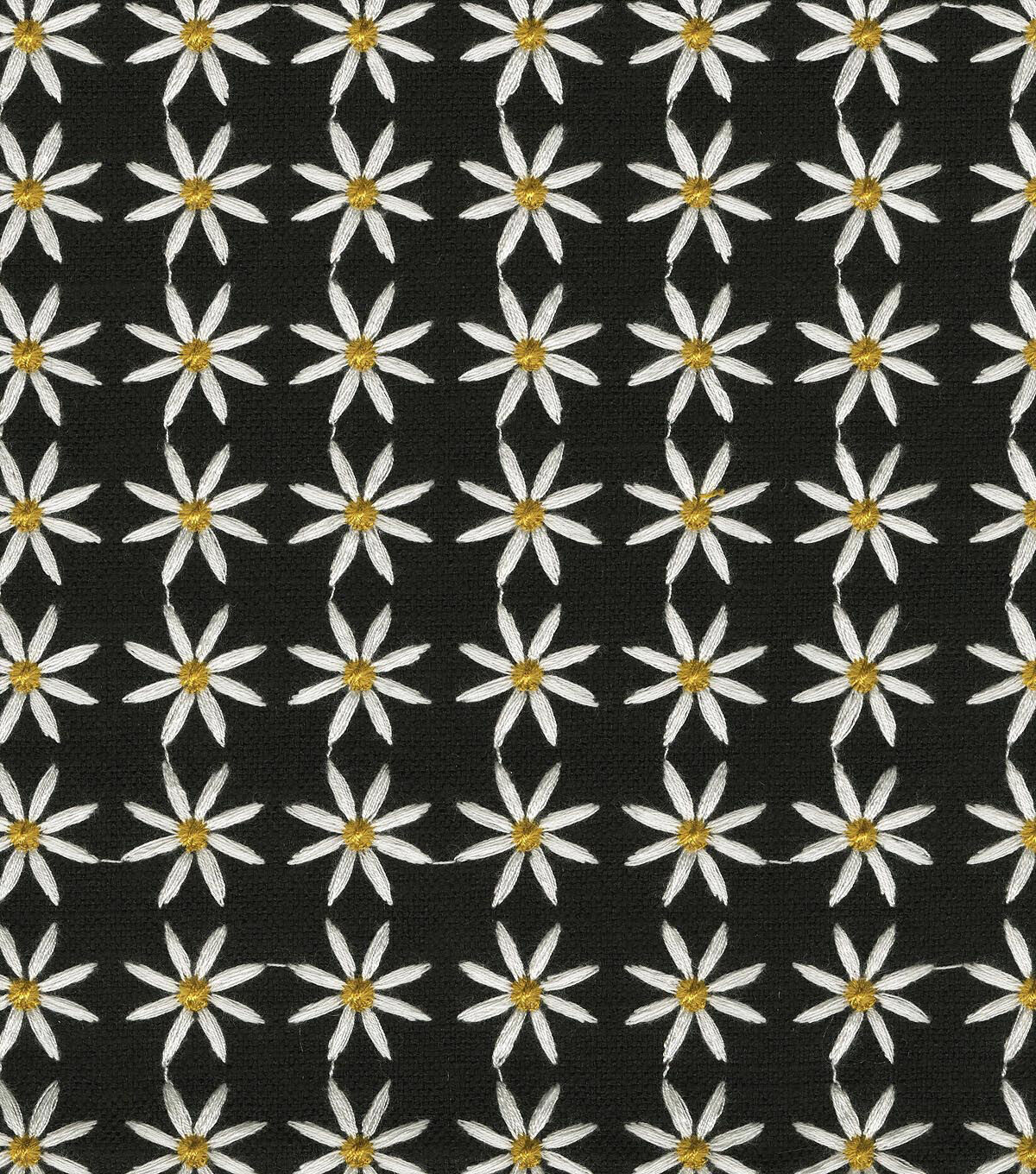 A dense and textural allover teeming with surface interest. Upon closer inspection, a dazzling array of gorgeously embroidered daisies pops to the surface with cheerful zest.