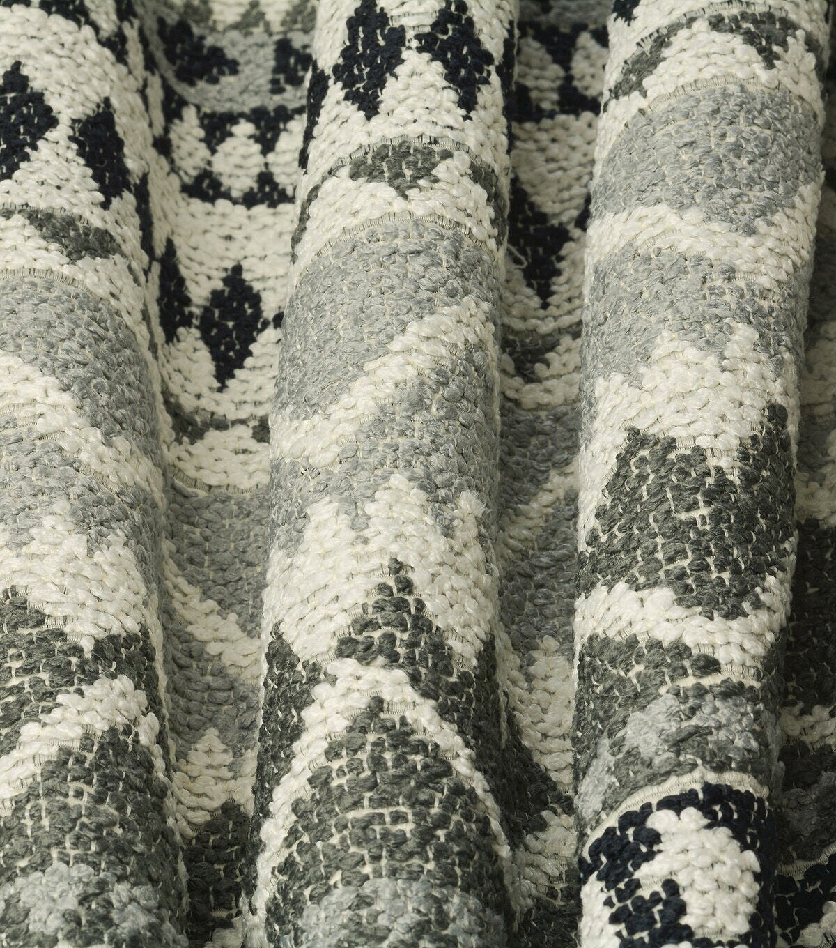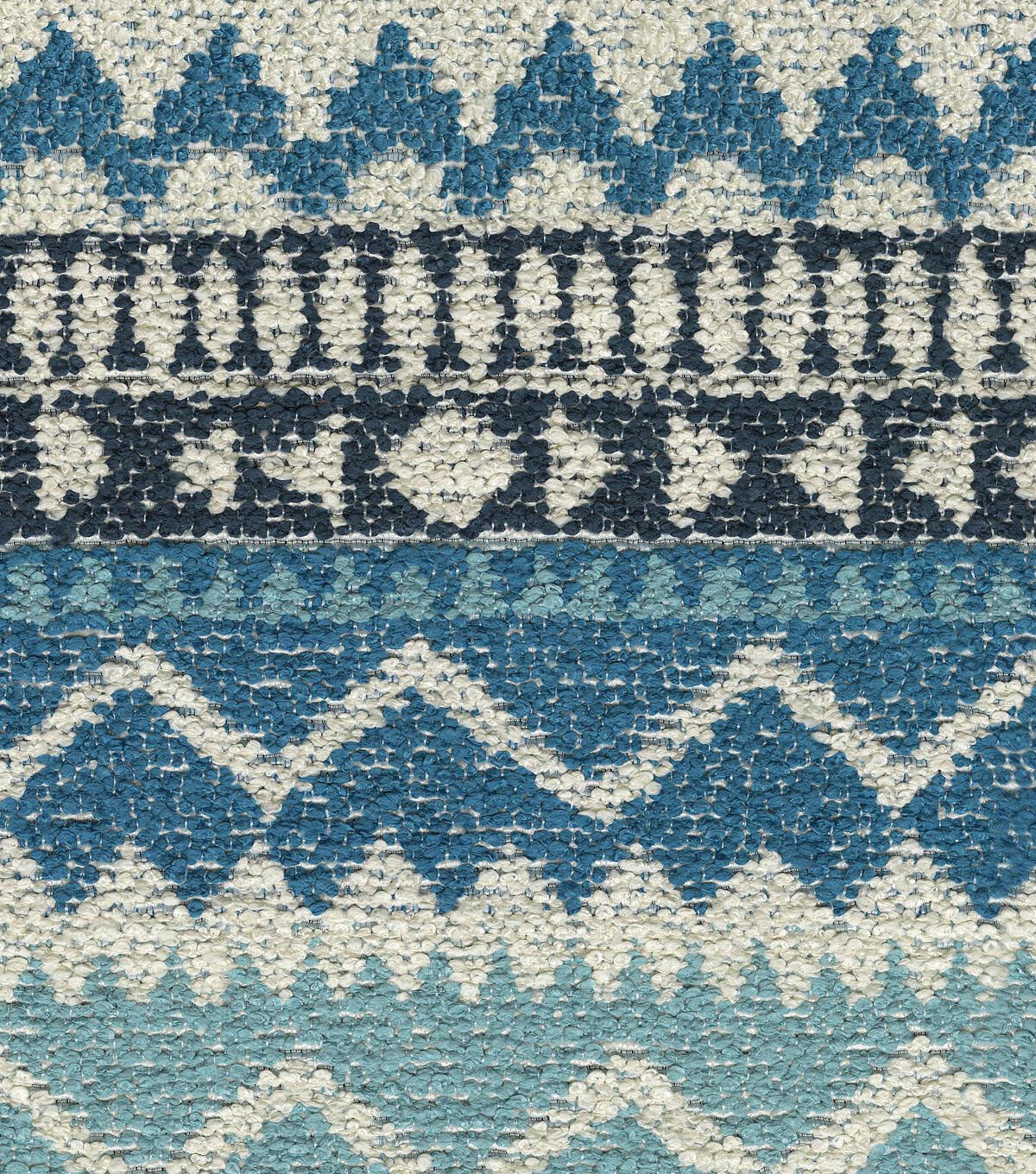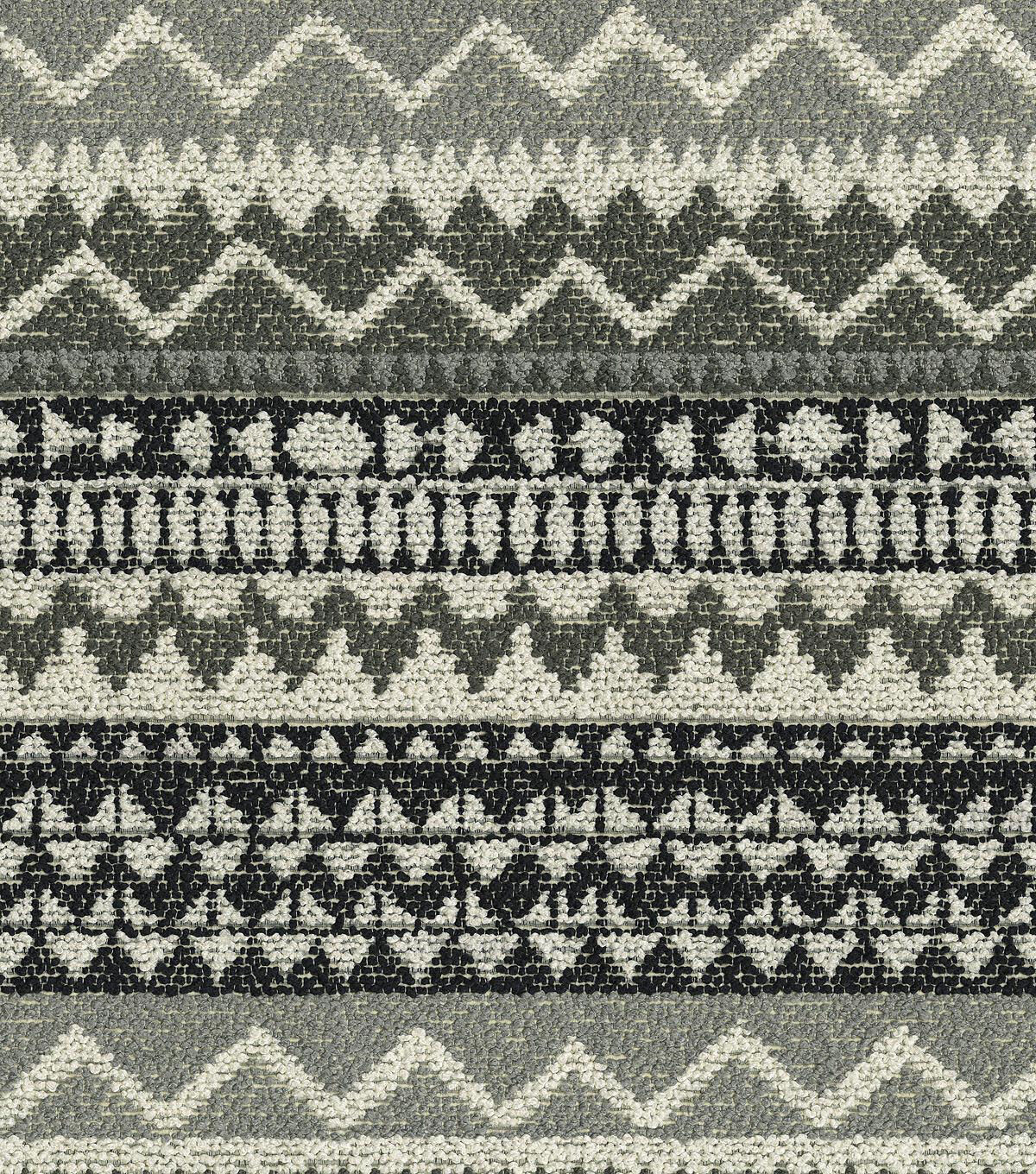 Drawing inspiration from folkloric tribal design, Pilgrimage Stripe's playful bouclé yarn infuses vivid horizontal bands with tactile allure and visual richness. Vigorous geometric forms dance gracefully amid streams of vibrant color and texture, crafting an illusion of seamless fluidity.