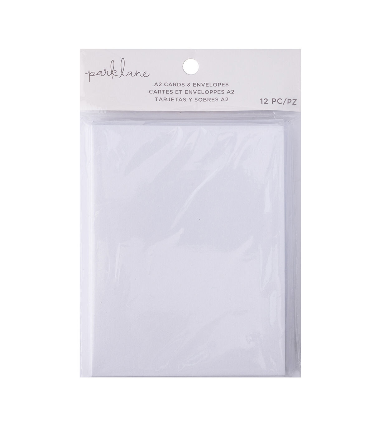 Park Lane offers a brilliant selection of cards and envelopes that deliver your salutations in style. They're perfect for wedding invitations, birthdays and holiday cards, graduation announcements, and so much more. Dress them up for any occasion with your own stickers, washi tape, pens and markers, then send them out to family and friends. Cards and envelopes are available in a wide variety of colors and sizes to choose from to fit your style and message. This package includes 12 white shimmer cards and 12 envelopes measuring 5.5 x 4.25 inches (A2 size).