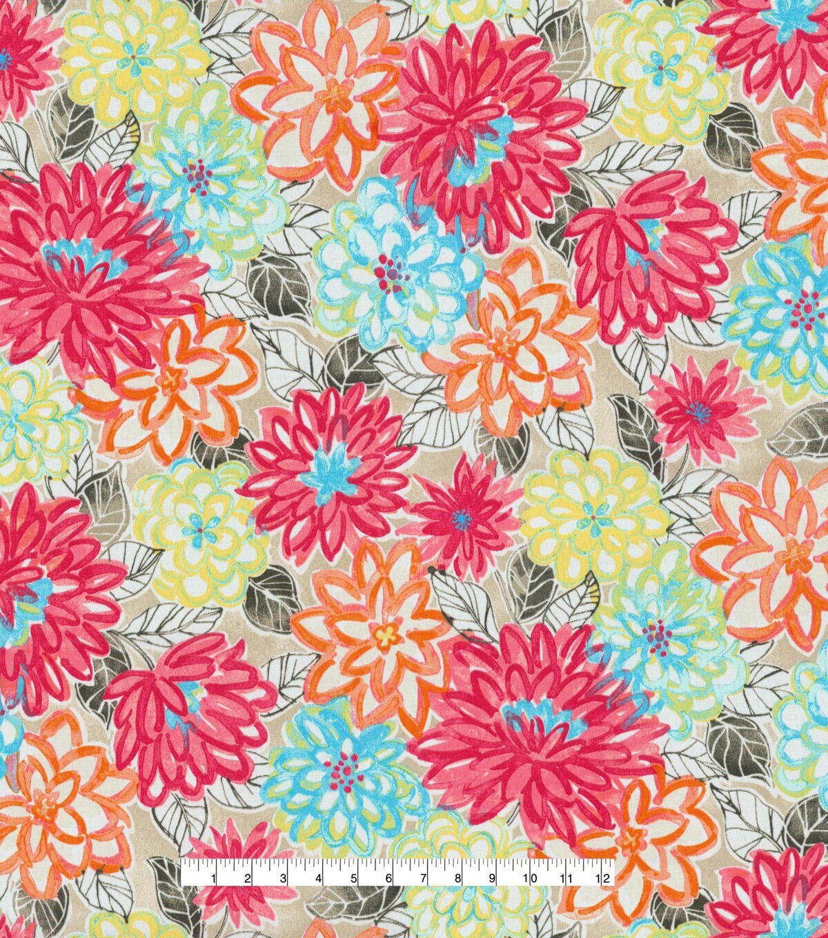 Lend a floral touch to your outdoor space with this 100% spun polyester printed fabric from P/K Lifestyles. Matisse Dance Watermelon is a vibrant choice for chair cushions, toss pillows, tablecloths, and other outdoor living accents. Colors include shades of pink, blue, orange, yellow, and gray.