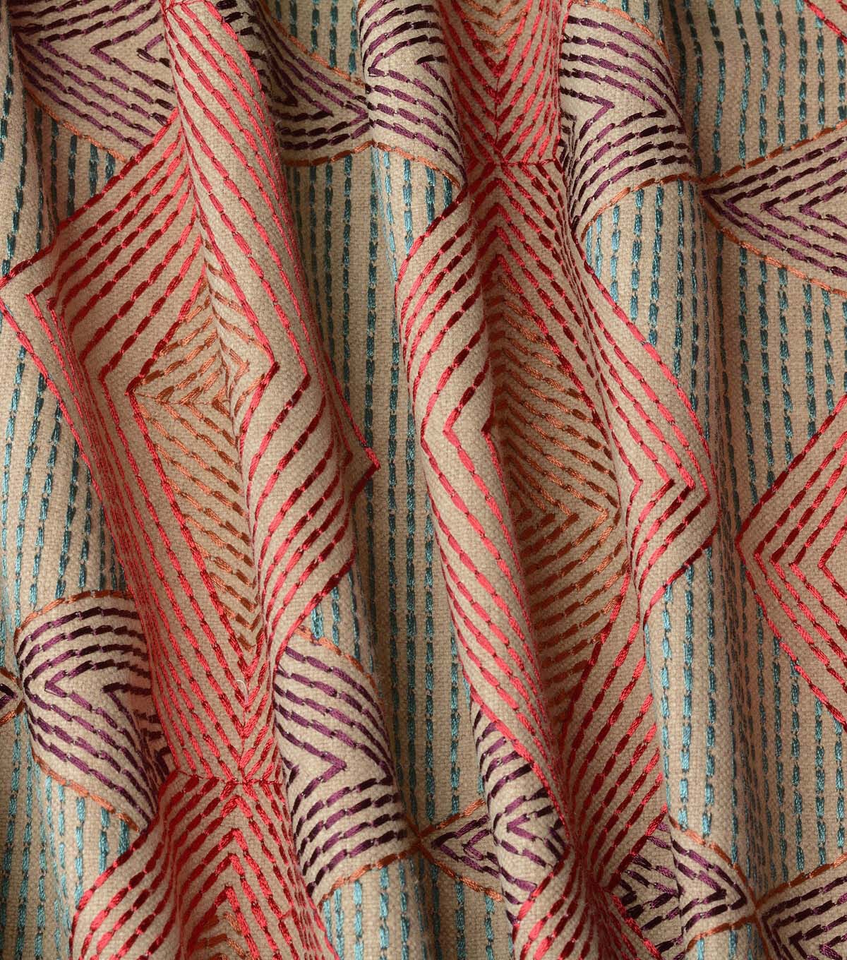 Create throw pillows, window accents, bedding, tote bags, and more with this versatile embroidered home decor fabric from PKL Studio.
