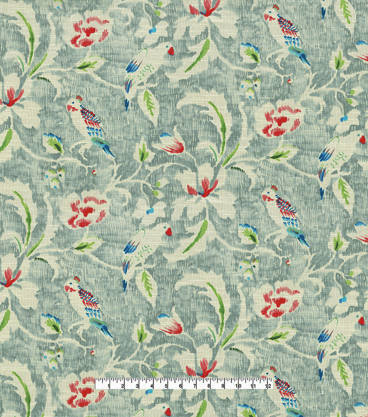 Amidst the shaded branched of the forest, perched are a pandemonium of parrots. Draped in a comforting backdrop of cross-stitches pigment, the bords mirthfully socialize amongst each other. Made of 100% cotton, this durable fabric is suitable for a wide range of upholstery and home decor projects.