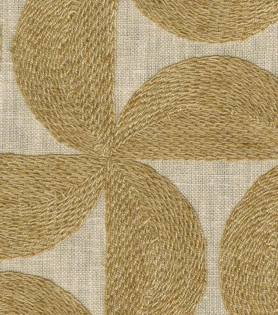 An artisanal pinwheel lattice constructed from half-circles arranged at 90-degree angles makes up this fun pinwheel design. Each embroidered shape is stitched from fiber-dyed yarn to emulate a flannel hand, with diverse shades of fiber working in tandem for a wool-like presentation.