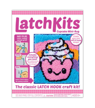The classic latch hook craft kit is back! LatchKits are a fun and easy-to-learn craft—just loop, hook, and pull! Everything you need is included: the handy latch hook tool, pre-cut yarn and color-coded, easy-to-follow canvas make getting started on your project a snap. The sturdy canvas features fabric-lined edges and hanging loops to create your very own soft and fuzzy design that’s ready to hang on your wall or use as a mini-rug—it’s a great anytime project!