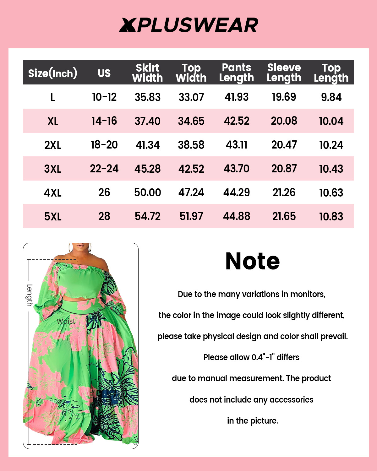 • Plus Size Vacation Green Graphic Off The Shoulder Sundress 3/4 Sleeve Two Piece Skirt Sets