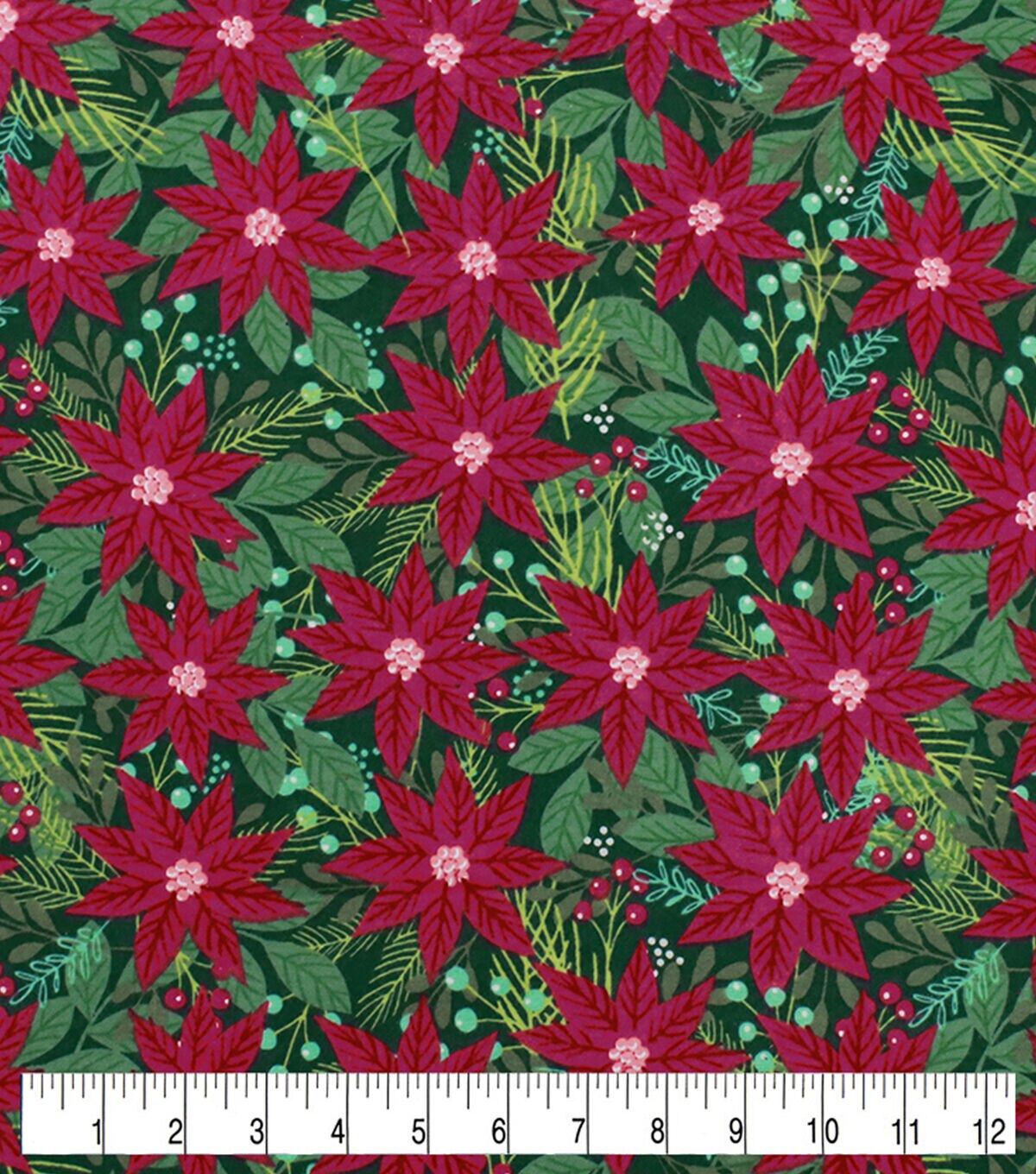 • Poinsettia & Leaf Super Snuggle Christmas Flannel Fabric