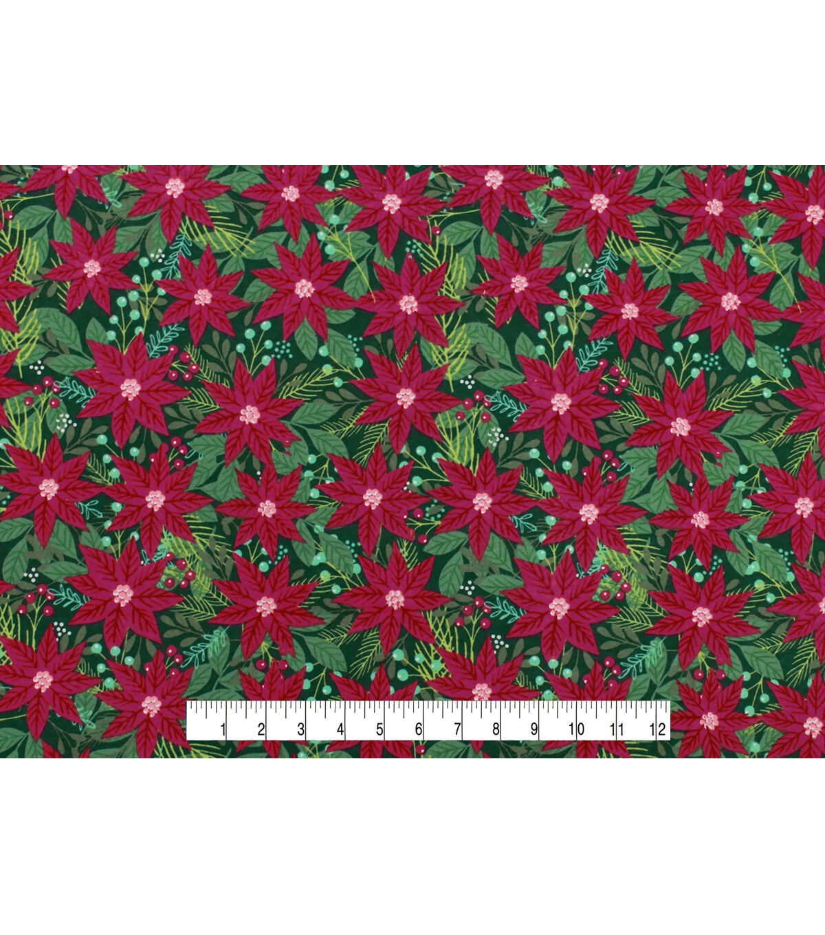 Poinsettia & Leaf Super Snuggle Christmas Flannel Fabric