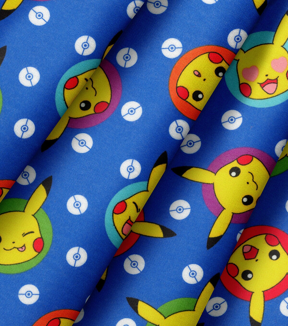 Pokemon Pikachu Spots on Blue Flannel Fabric