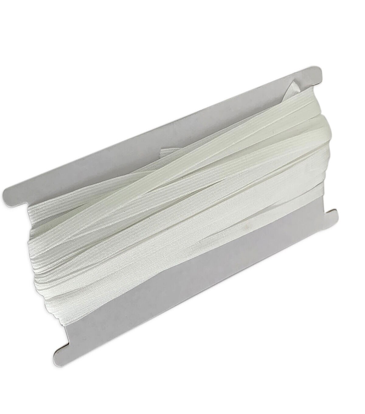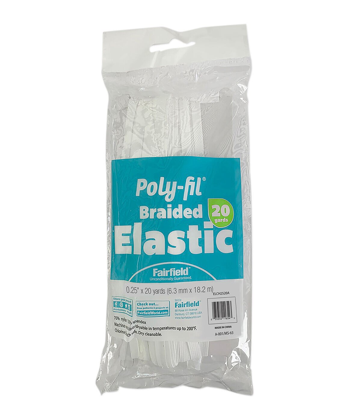 Poly-Fil Braided Elastic is generally stiffer and stronger than knitted elastic. It is perfect for making face masks (for people who do not have a latex allergy) and for all of your sewing needs. Made from 60% polyester and 40% Latex. Machine wash and dry.