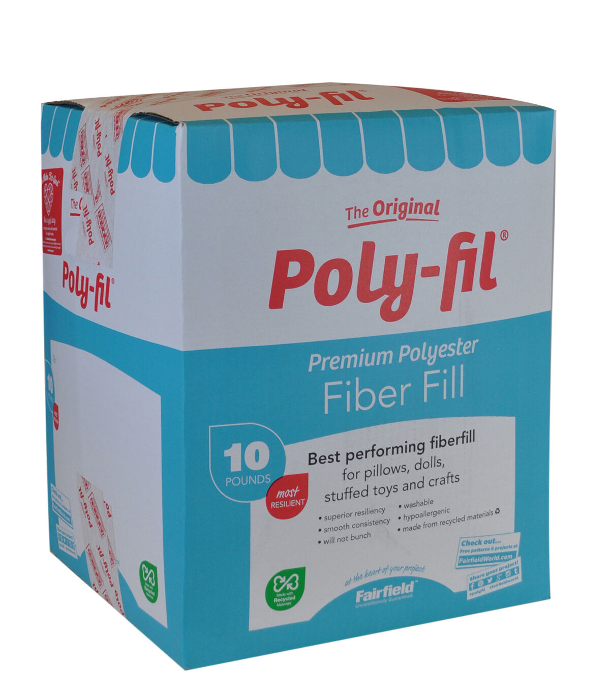 Crafters have made The Original Poly-Fil the best selling polyester fiber fill in America. A unique process explodes the special blend of 100% polyester fibers creating an extraordinary resilience that maintains its integrity through laundering. Use for all types of craft and home décor projects. Poly-Fil has superior resiliency, smooth consistency, is hypo-allergenic, and unconditionally guaranteed. Poly-Fil can be used as cloud scapes, cloud walls, cloud ceilings, classrooms, arts and crafts with the kids as well as holiday decor and play scenery. Machine wash on gentle with warm water. Air dry or tumble dry on air or low heat setting. Fiber may shift during laundering, gently massage the project with fingertips to move the fiber back into place. When working with a lot of projects, fiber fill is the most economical way to complete your projects.