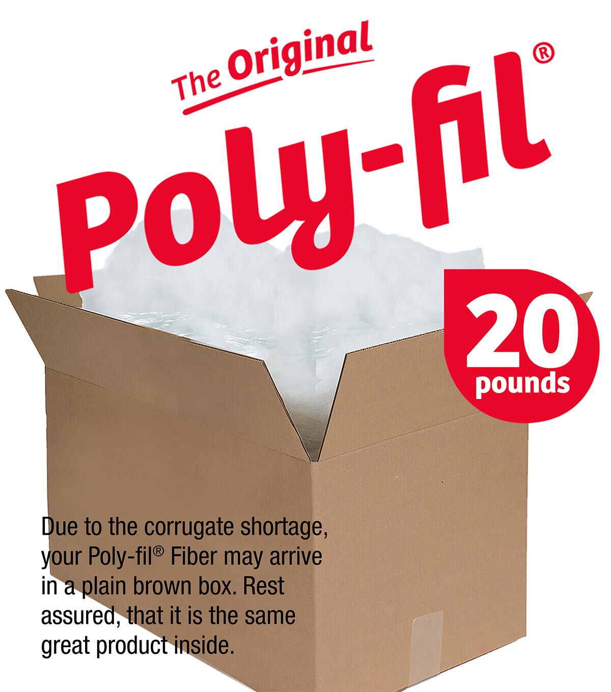 Due to the corrugate shortage, your Poly-fil® Fiber Fill may arrive in a plain brown box.