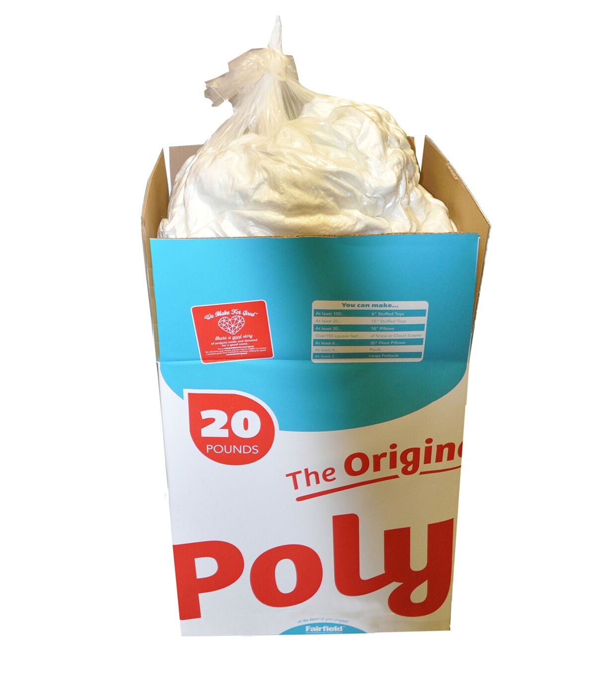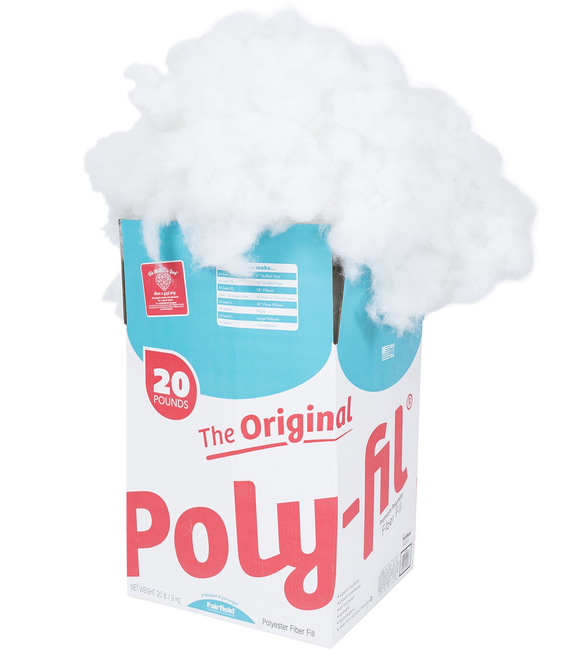 Crafters have made The Original Poly-Fil the best selling polyester fiber fill in America. A unique process explodes the special blend of 100% polyester fibers creating an extraordinary resilience that maintains its integrity through laundering. Use for all types of craft and home décor projects. Poly-Fil has superior resiliency, smooth consistency, is hypo-allergenic, and unconditionally guaranteed. Poly-Fil can be used as cloud scapes, cloud walls, cloud ceilings, classrooms, arts and crafts with the kids as well as holiday decor and play scenery. Machine wash on gentle with warm water. Air dry or tumble dry on air or low heat setting. Fiber may shift during laundering, gently massage the project with fingertips to move the fiber back into place. When working with a lot of projects, fiber fill is the most economical way to complete your projects.