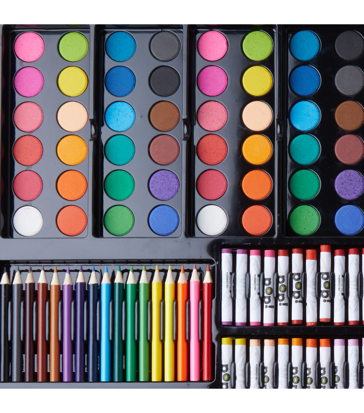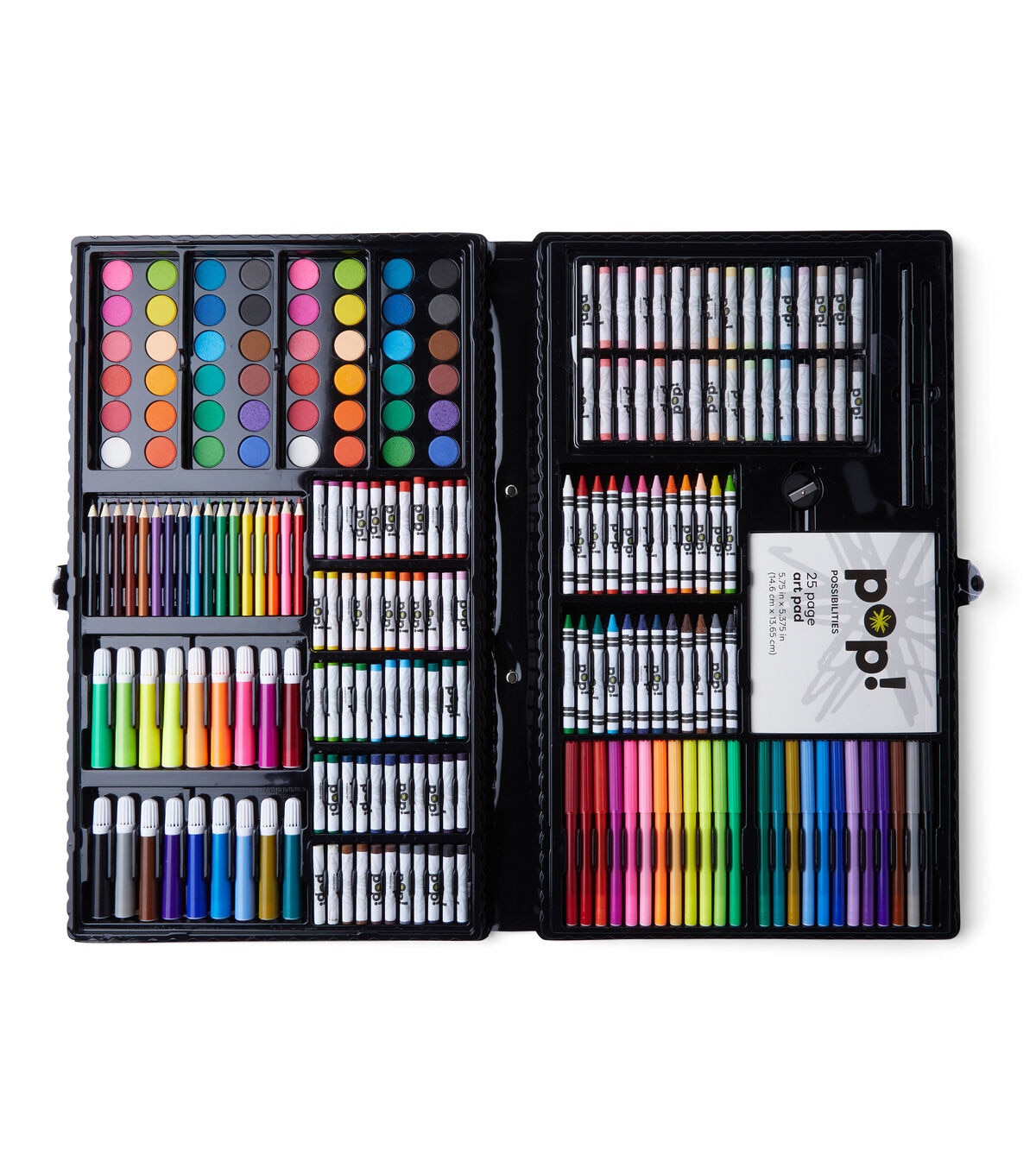 Let your creativity run wild with this mega-awesome art set! It includes 250 tools and colors for you to work with to create amazing works of art in no time. This package includes 55 oil pastel paints, 48 watercolor paints, 32 chalk pastels, 24 fineline markers, 24 crayons, 18 mini markers, 17 mini colored pencils, 4 watercolor palettes, 1 drawing pencil, 1 pencil sharpener, 1 artist brush, 1 art pad, and 1 storage case.