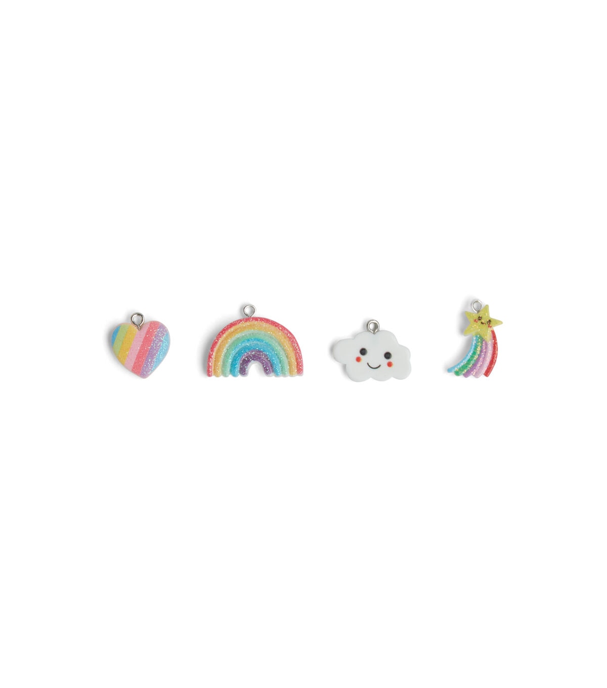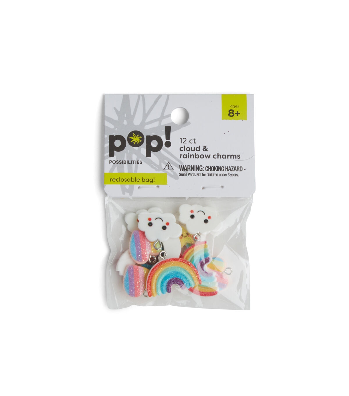 Your kids are going to love crafting with the POP! Possibilities Cloud & Rainbow Charms - Assorted. These adorable charms are shaped like hearts, stars, rainbows and clouds. Some of them are dusted with glitter for added charm. Have your kids design keychains and bracelets with them or use them to add a finishing touch to DIY craft projects.