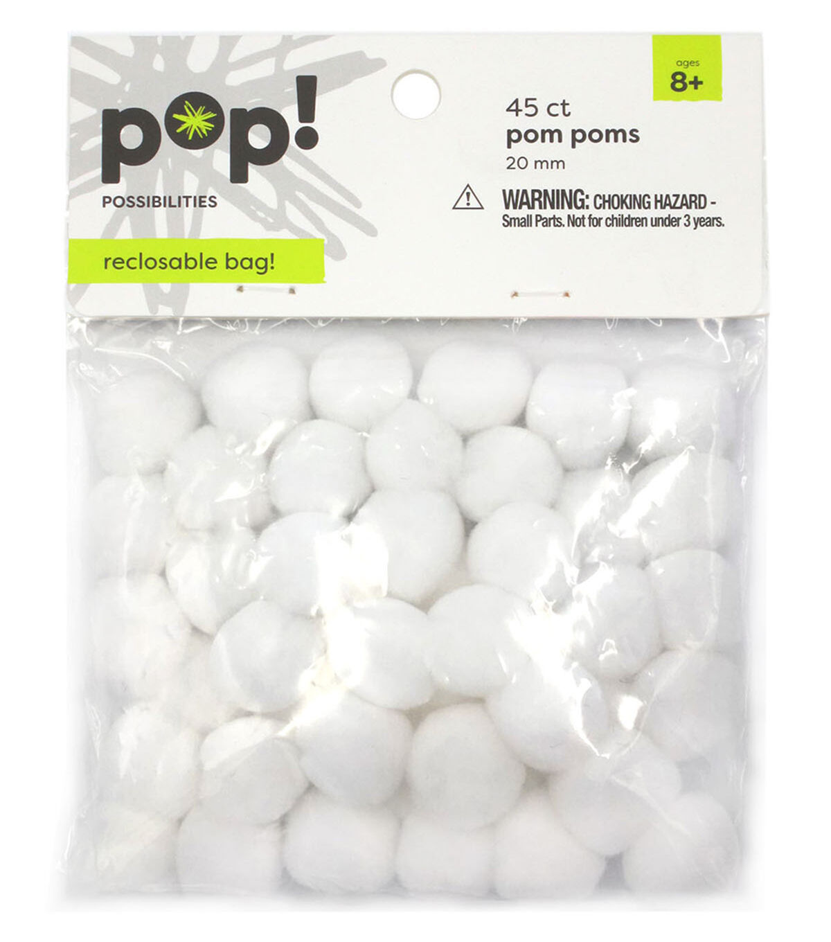 Add the POP! Possibilities Pom Poms - White to your little one’s craft supplies, and they will be delighted. Let them team these white pom poms with colorful ones, sold separately, and use them to make a garland for their bedroom window or door. This pack contains 45 pom poms.