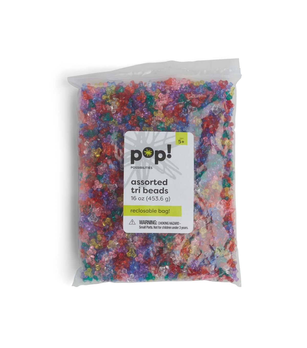The POP! Possibilities Tri Beads - Multi will come in handy for creating beautiful craft projects. These transparent tri beads sport vibrant, contrasting hues. Your kids can string them together to create lovely bracelets, anklets or necklaces. They will also be perfect to make colorful curtain tiebacks, keychains and more.