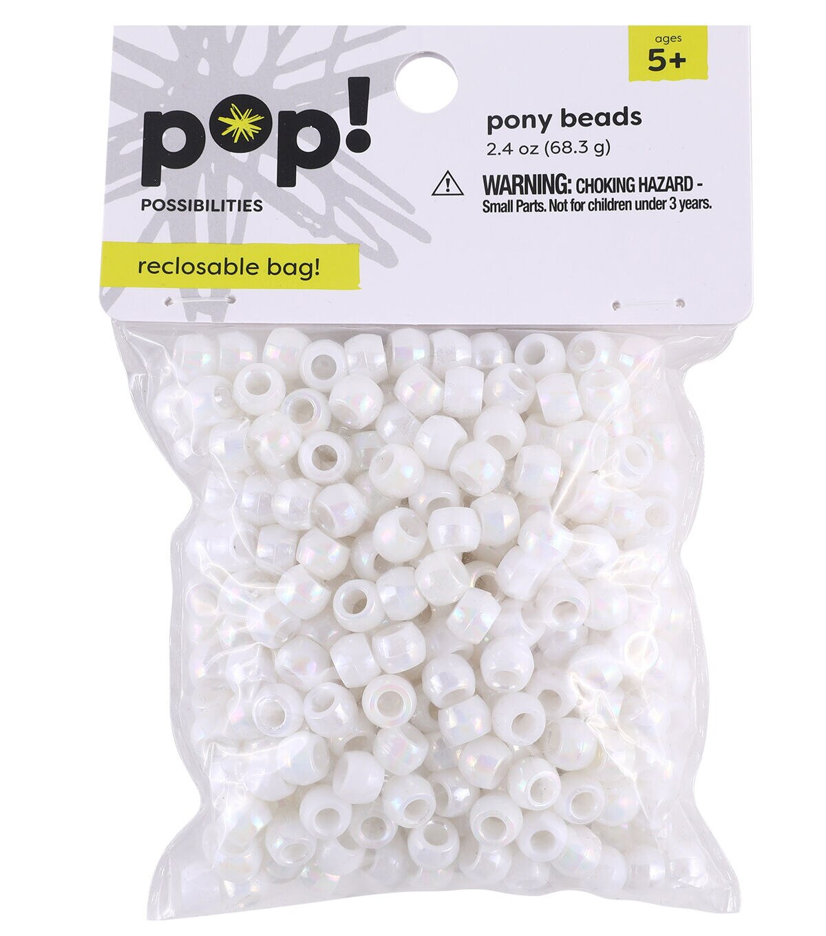 Your little ones will enjoy designing jewelry and other decor projects using the POP! Possibilities Pearl Pony Beads - White. Jewelry pieces like bracelets and necklaces made with these beads are sure to look elegant. They can also team these beads with metal charms, sold separately, to create keychains, handbag accessories and more.