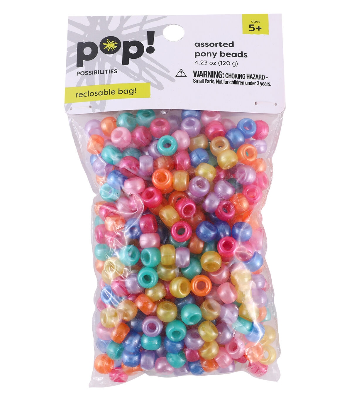 Your little crafter is sure to be delighted to see the POP! Possibilities Pearl Pony Beads - Pastel in their craft box. These pony beads sport vivid hues and a pearlized finish. They can use these beads to create anklets, keychains, zip pullers, bag tags and more. Add them to an elasticized cord to create pretty bracelets and headbands.
