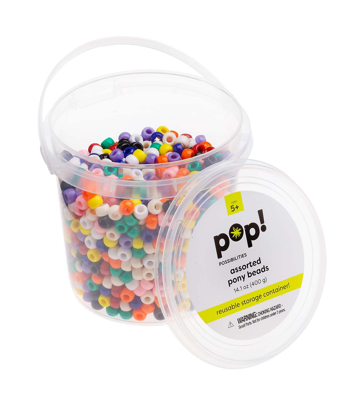 Simple yet pretty, the POP! Possibilities Pony Beads Filled Bucket - Multi will make a great addition to your kid’s craft kit. These pony beads flaunt vibrant shades and are perfect to create necklaces. Your little ones can also pair them with wooden beads in vivid hues and delightful charms to design unique bracelets and anklets.