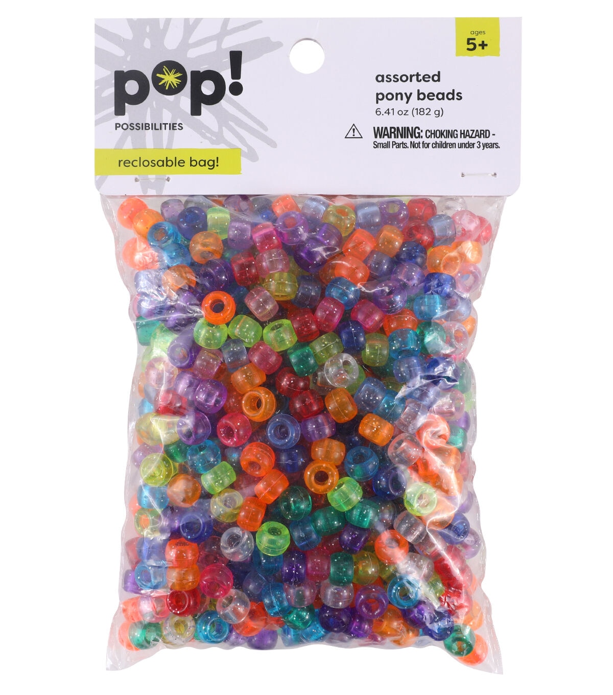 The POP! Possibilities Translucent Glitter Pony Beads will make your kid’s handmade jewelry creations stand out. This pack includes translucent pony beads sporting gorgeous shades with a glitter finish. Your little ones can team them with their favorite charms and use them to create colorful necklaces, bracelets, anklets and more. These beads will also make a great addition to DIY suncatchers or wind chimes.
