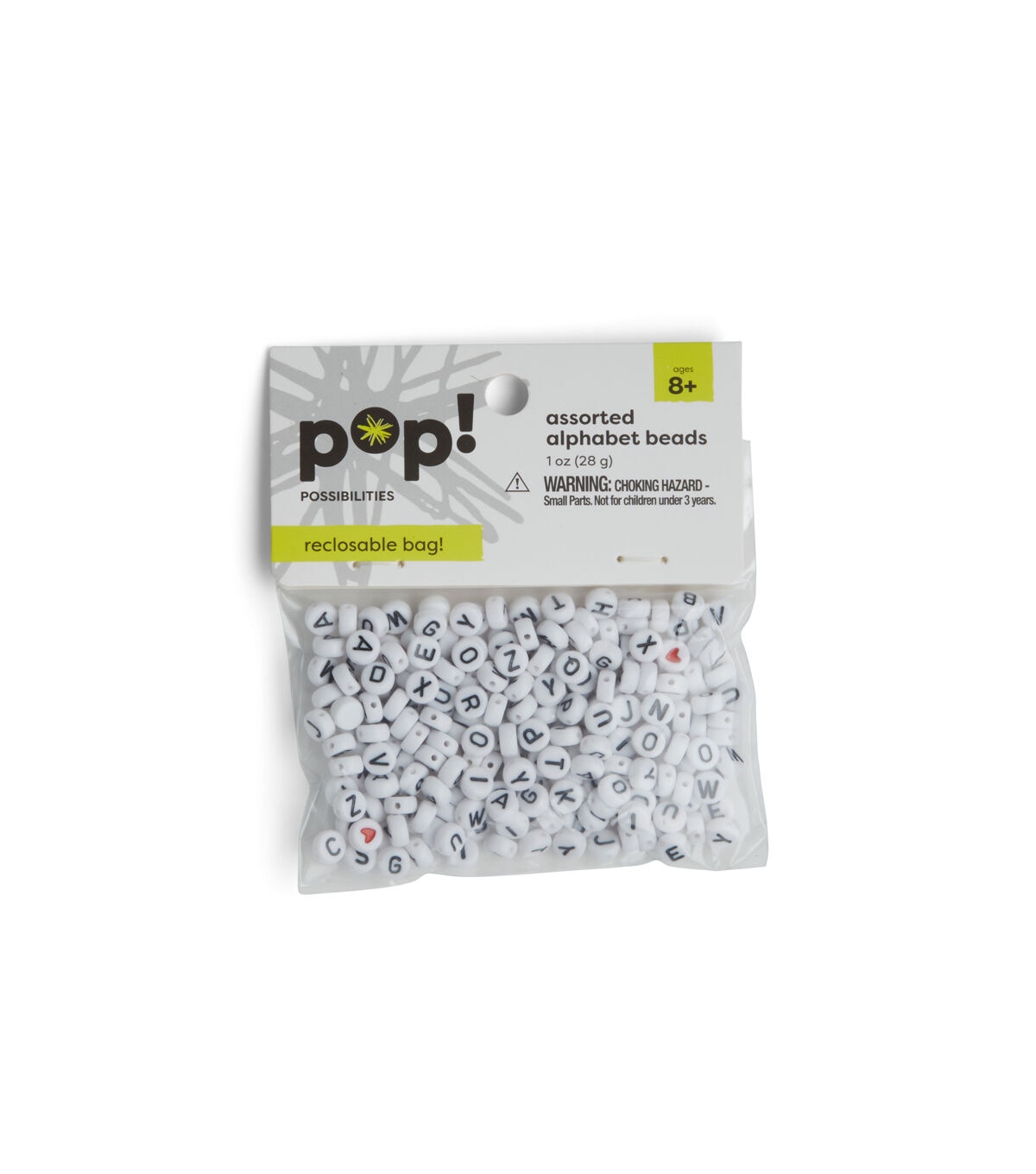 Create an interesting bracelet for your kids with the POP! Possibilities Assorted Beads - Alphabet. Sporting a print of letters in a black shade and a red heart, these white beads are just what you need to make your craft projects unique. You can also use them to make lovely necklaces and keychains. Team them with colorful pony beads for visual flair.