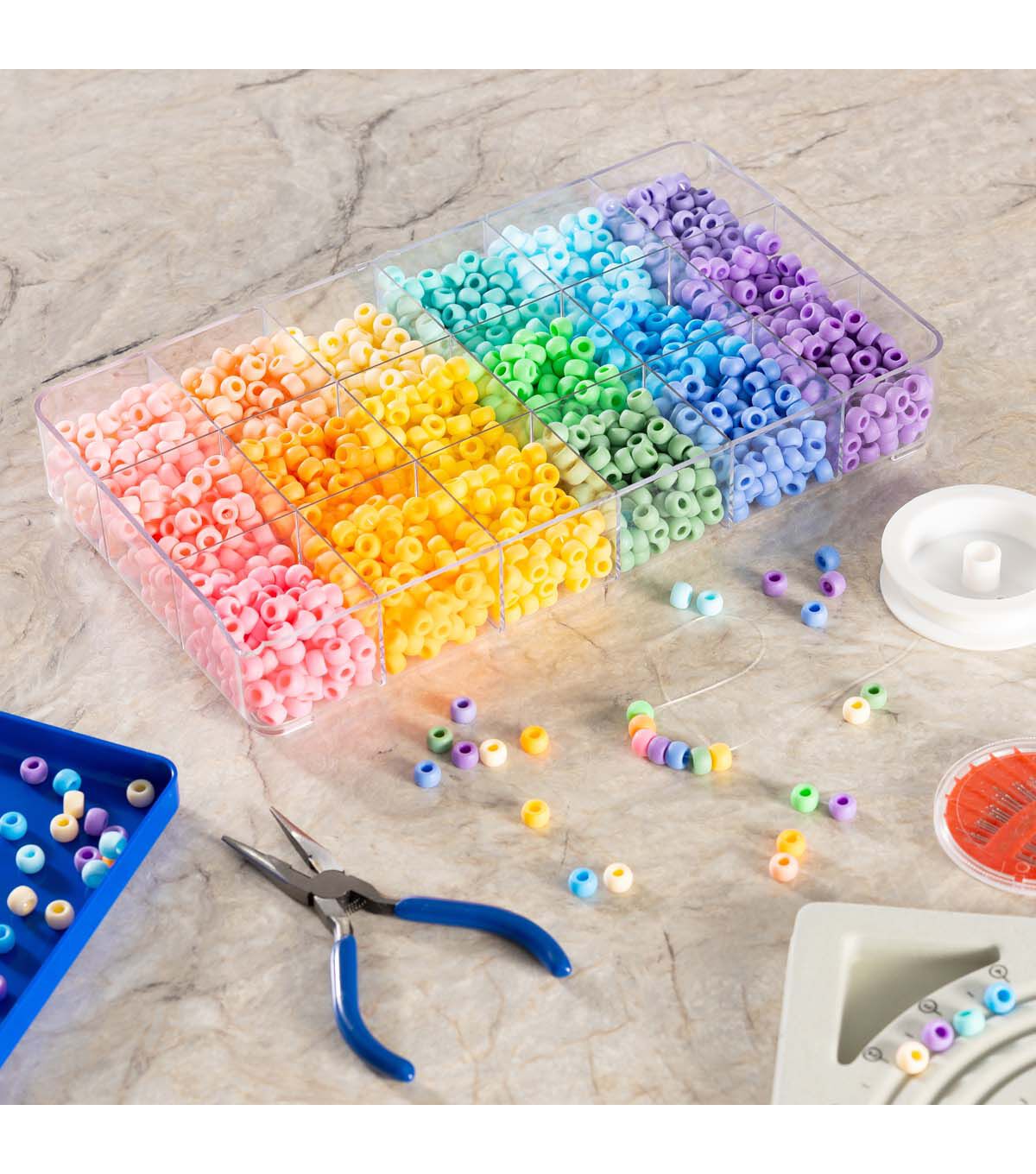 Watch your little one at their artistic best as they use the POP! Possibilities Pony Bead Box Kit - Rainbow in their craft and jewelry projects. This box consists of pony beads in beautiful rainbow hues and will make a delightful addition to their craft box. They can use these beads to create necklaces, bracelets and anklets or decorate handmade greeting cards and photo frames.