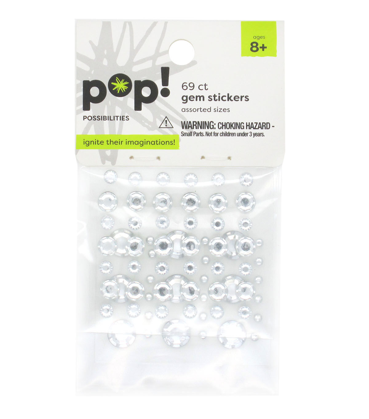 Add bling to your art and craft projects with the POP! Possibilities Assorted Round Rhinestone Gem Stickers - Clear. This pack includes clear rhinestone stickers in different sizes. Team up with your little munchkins and use them to create a sparkling ornament for the holiday tree. They can also use these gem stickers to accentuate their headbands, bags and more.