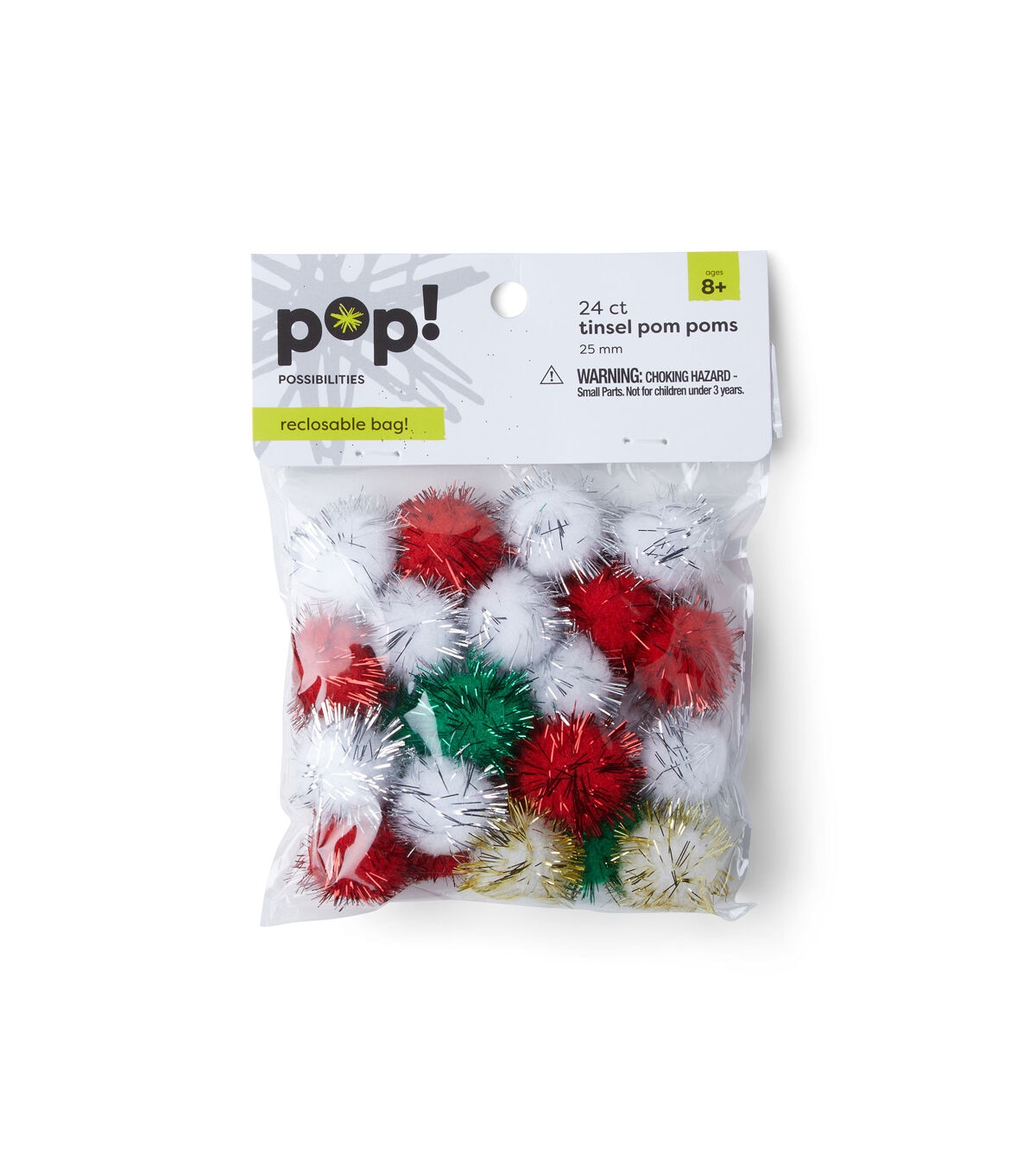 The POP! Possibilities Tinsel Pom Poms will be perfect to create holiday-themed projects. They sport the holiday hues of red, green and white. Gold-toned tinsel adds a festive touch to these pom poms. String them together and make a lovely garland for the mantelshelf. You can also use them to adorn wreaths, curtains and more.