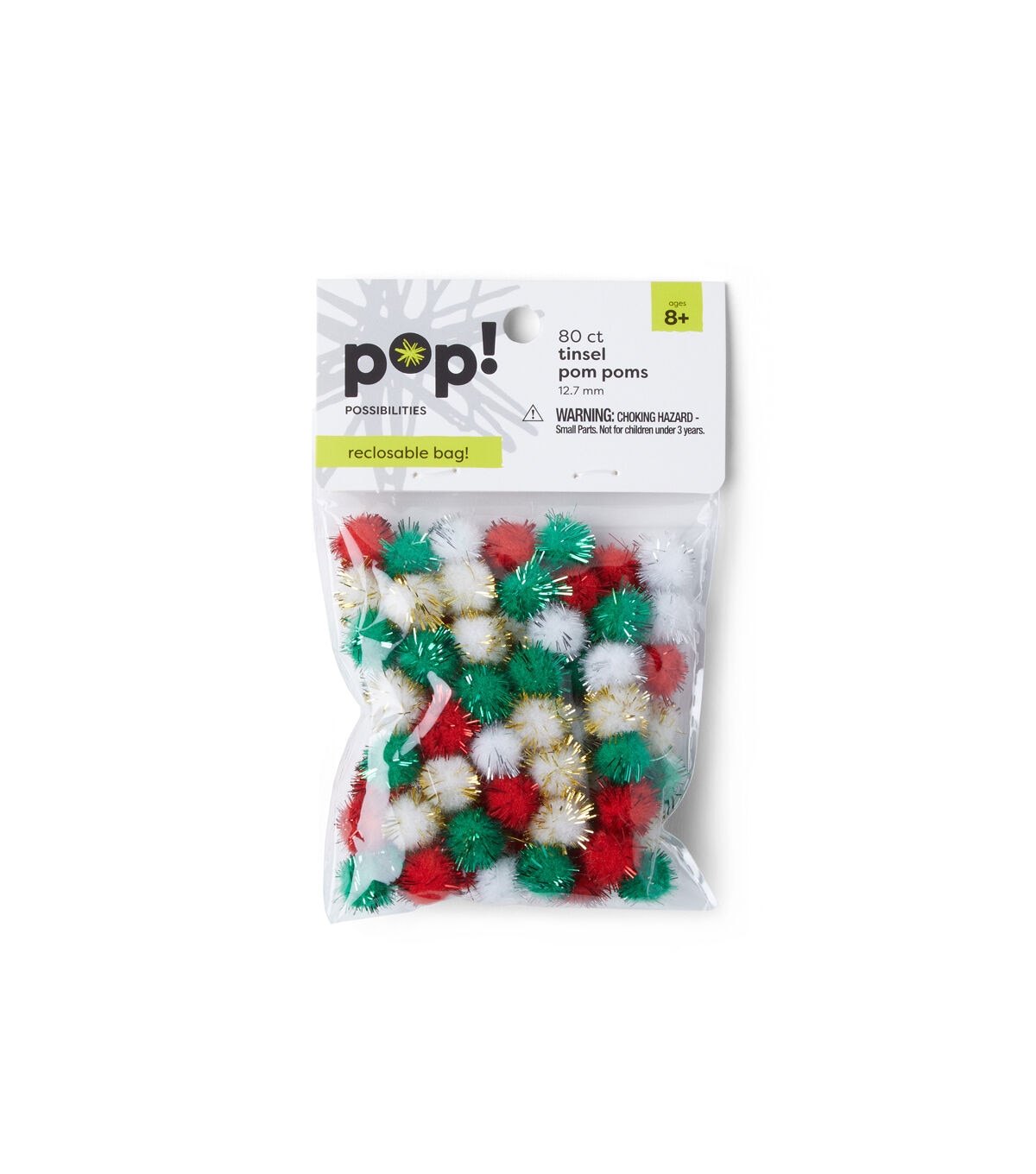 The POP! Possibilities Tinsel Pom Poms will be perfect to create holiday-themed projects. They sport the holiday hues of red, green and white. Gold-toned tinsel adds a festive touch to these pom poms. String them together and make a lovely garland for the mantelshelf. You can also use them to adorn wreaths, curtains and more.