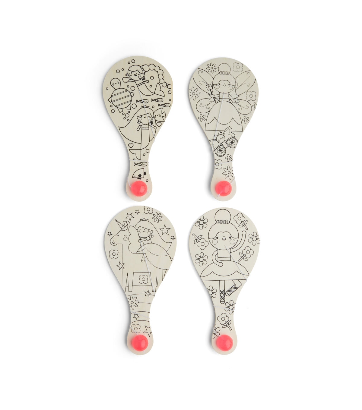 Keep your kids busy during holidays with the POP! Wooden Paddleball Game Set - Magical. This kit contains four unfinished wooden paddleballs and the paddles flaunt lovely designs. Your little ones can customize them using vibrant colors and embellish them with glitter or sequins. They can gift the finished paddleballs to their friends.