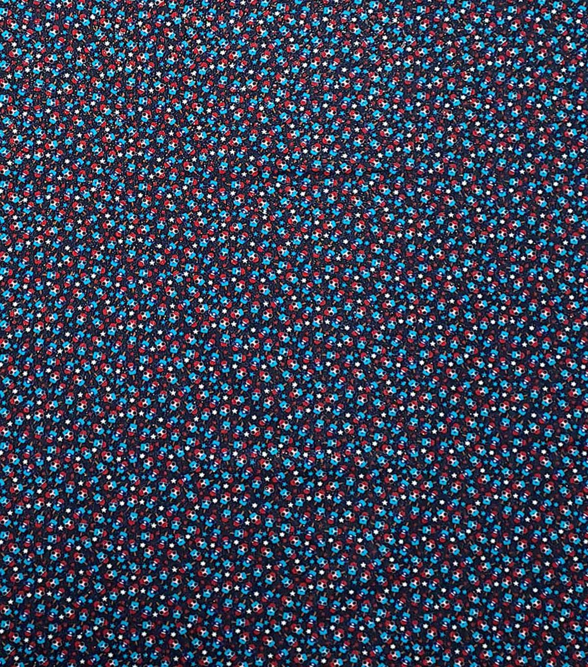 This fabric is made of 100% cotton and is 44 inches wide. It is easy to care for, simply machine wash gentle cold, tumble dry low, and cool iron if needed. This imported fabric is perfect for creating patriotic quilts, table runners, and other home decor items.