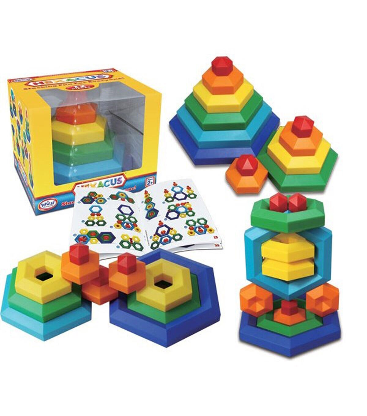 - Even very young children can have fun stacking, sorting and building with the 25-piece Hexacus set from Popular Playthings