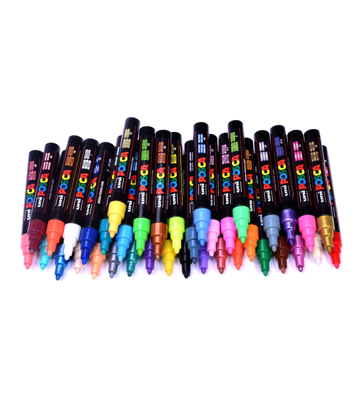 Non-toxic, water-based POSCA paint markers can be used on almost any surface, and are loved by professionals, creative hobbyists and amateurs alike. The alcohol and solvent-free opaque paint covers well, is blendable, dries quickly and can be overlaid when dry. ACMI certified and made in Japan. The PC-5M medium bullet tip marker is the "multi-purpose" marker of the POSCA range. It produces neat and precise lines, and is ideal for coloring. An all-around favorite of both professionals and beginners.