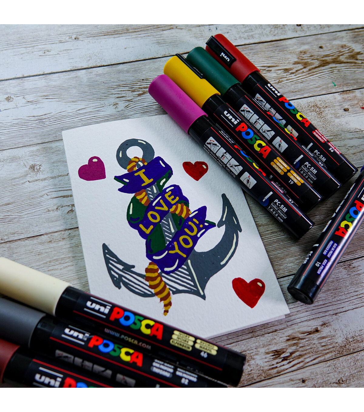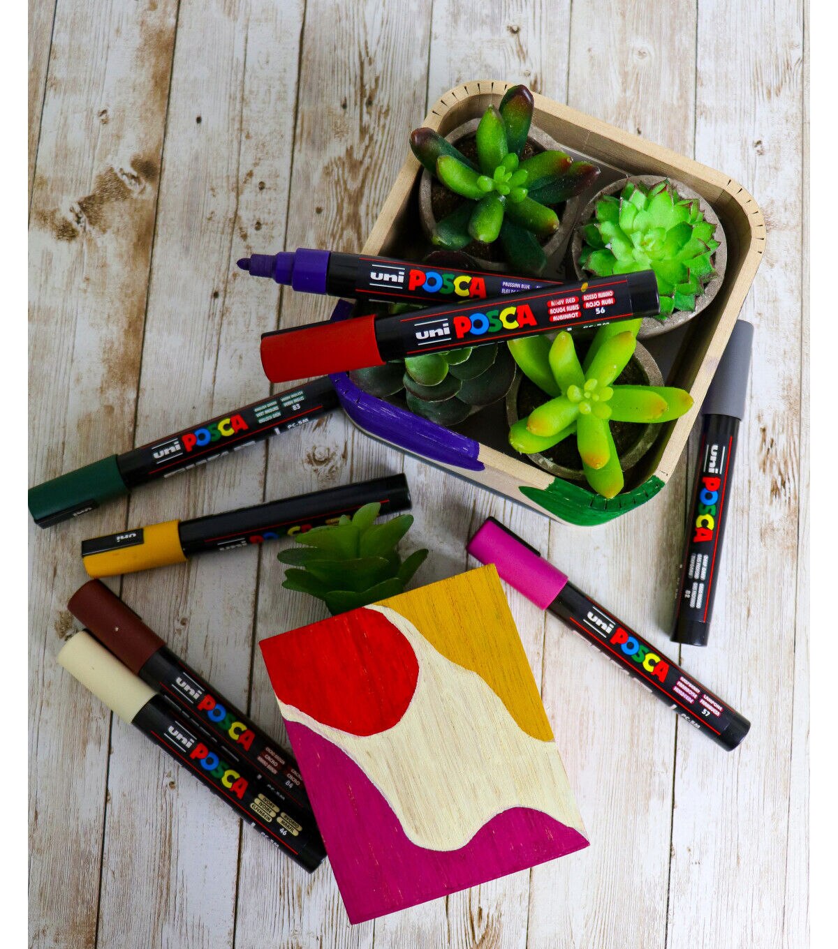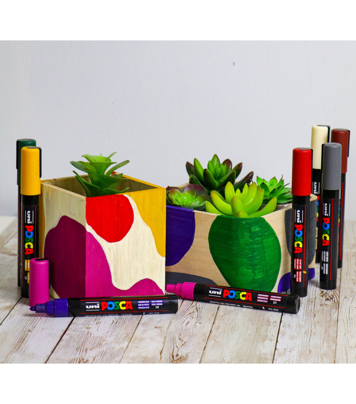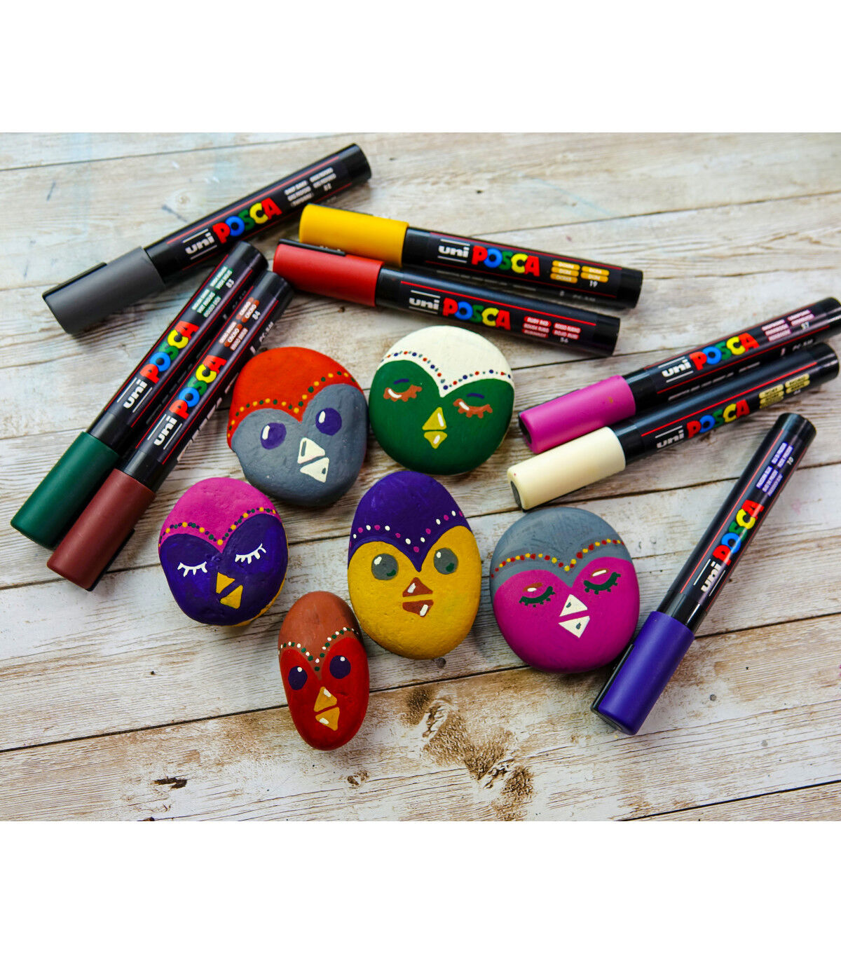 Non-toxic, water-based POSCA paint markers can be used for drawing on almost any surface, and are loved by professionals, creative hobbyists and amateurs alike. The alcohol and solvent-free opaque paint covers well, is blendable, and can be overlaid when dry. ACMI certified and made in Japan. This set includes deep grey, english green, ruby red, prussian blue, ochre, cacao brown, white and raspberry.