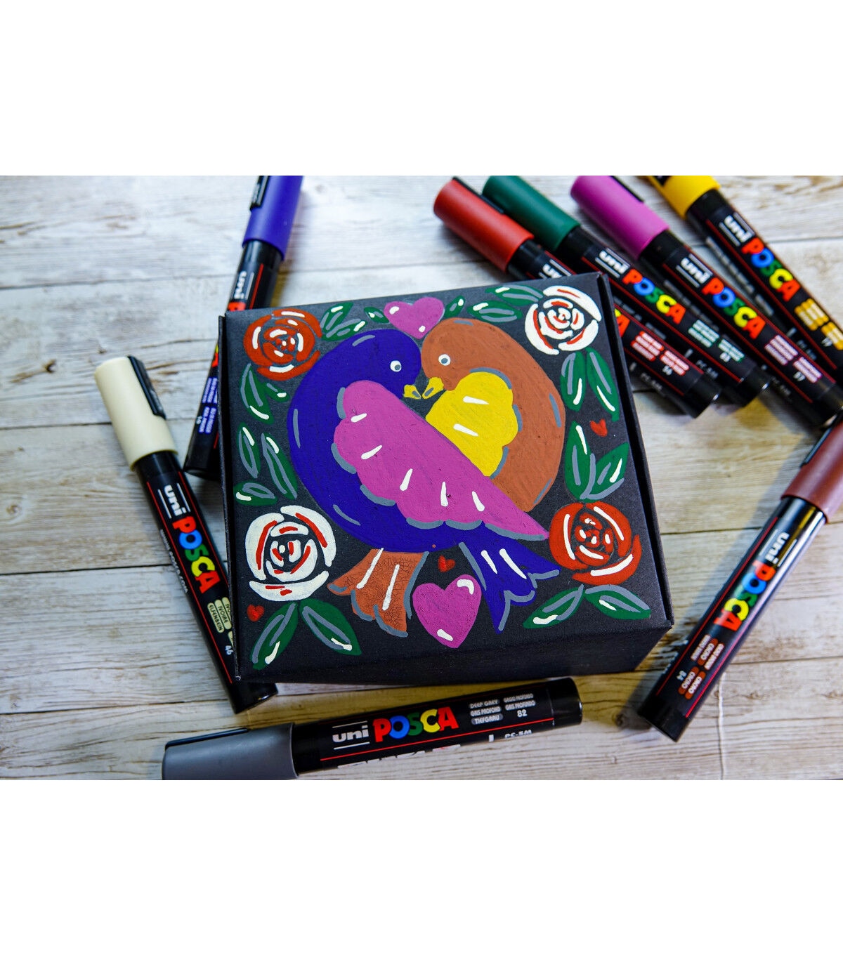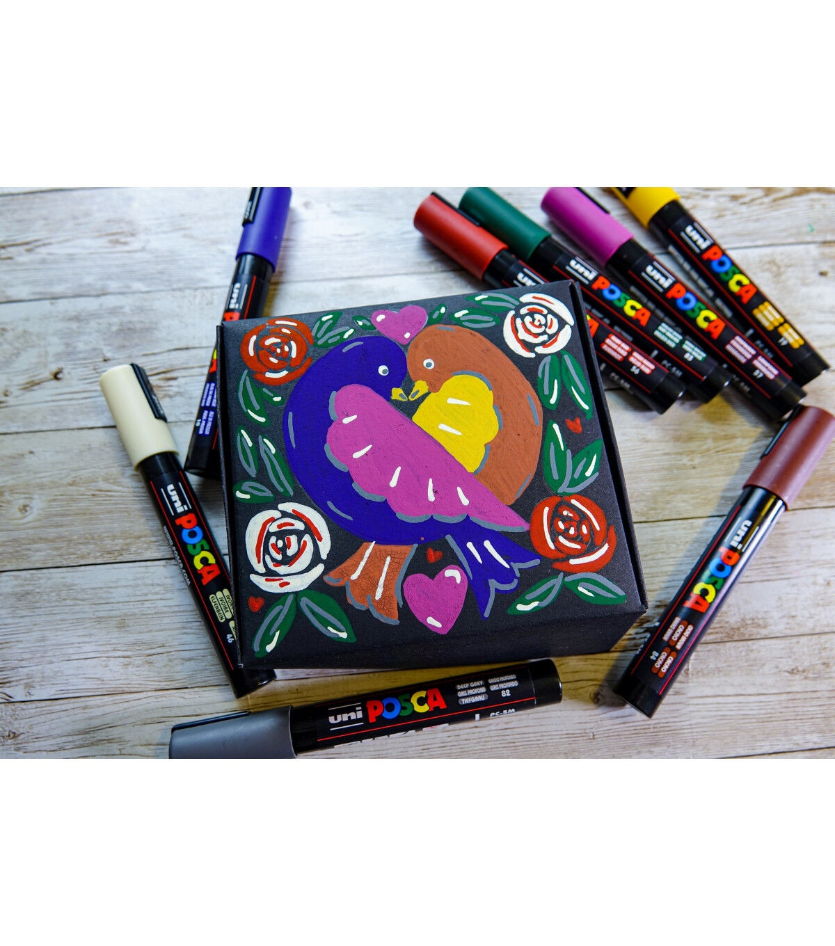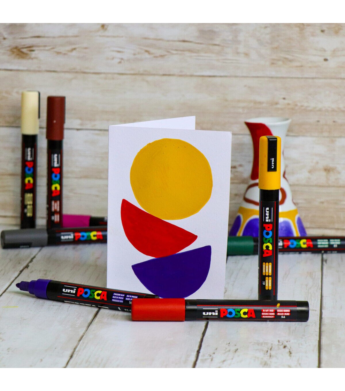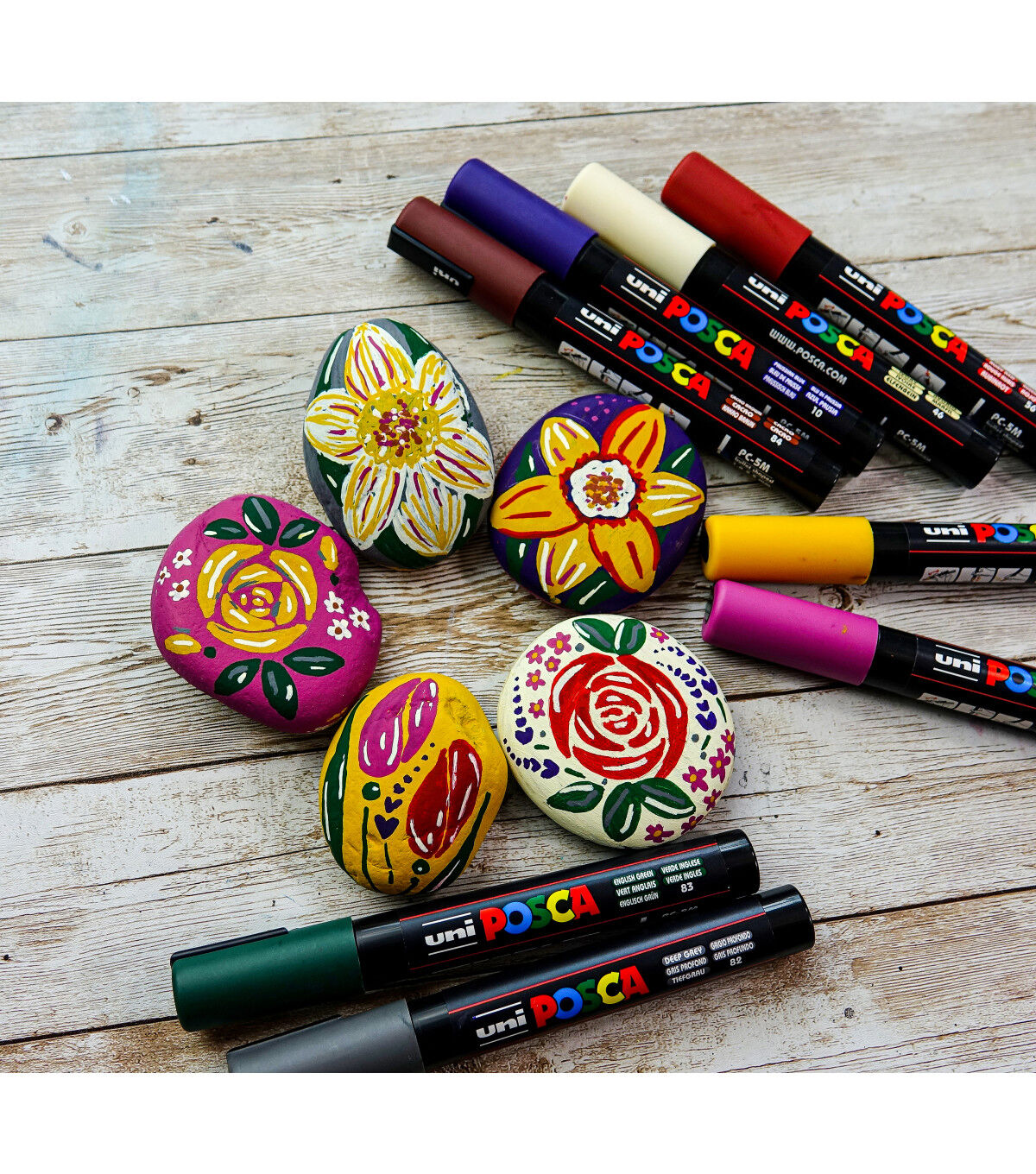 Non-toxic, water-based POSCA paint markers can be used for drawing on almost any surface, and are loved by professionals, creative hobbyists and amateurs alike. The alcohol and solvent-free opaque paint covers well, is blendable, and can be overlaid when dry. ACMI certified and made in Japan. This set includes deep grey, english green, ruby red, prussian blue, ochre, cacao brown, white and raspberry.