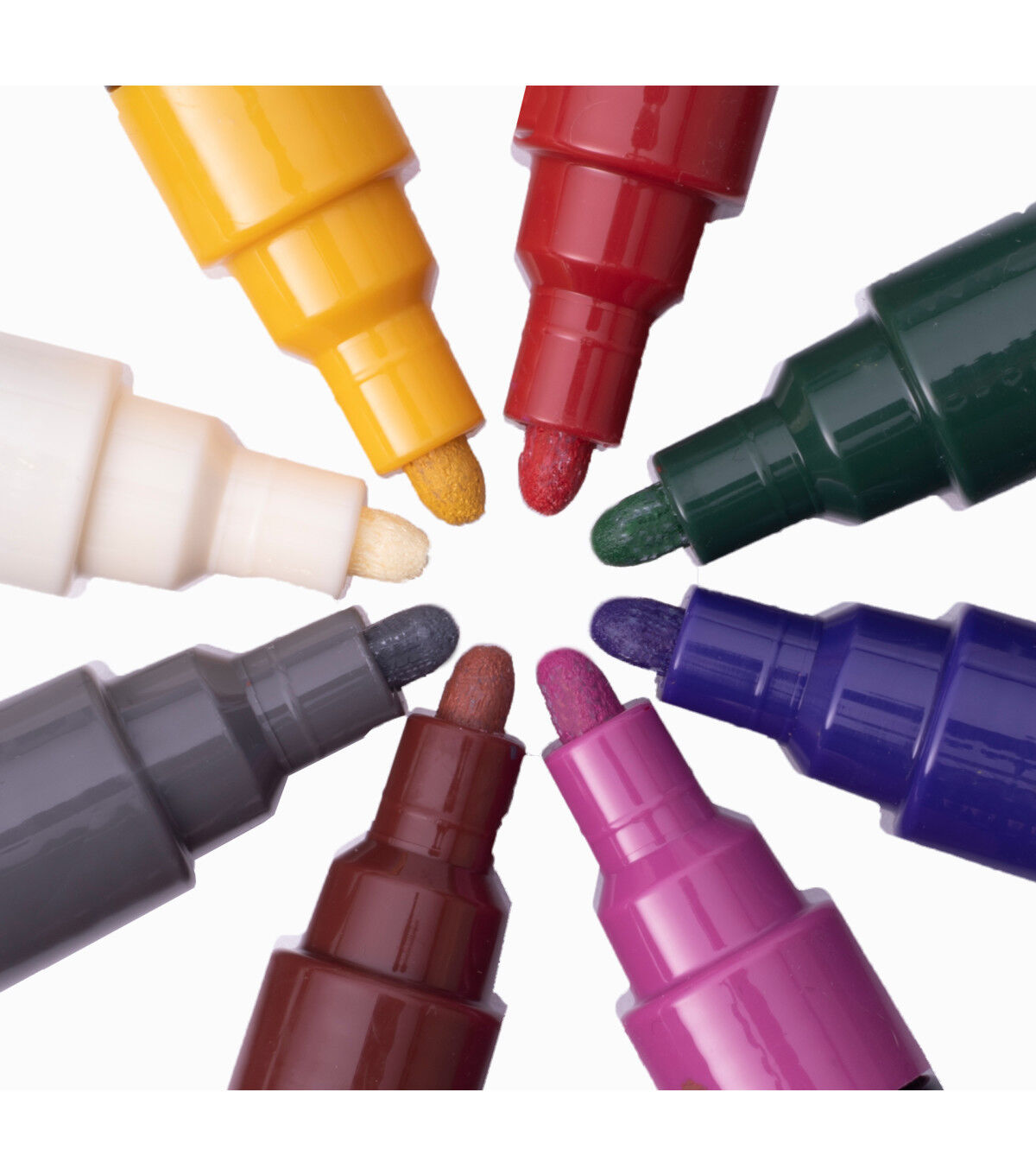- Ink from markers dries quickly, Lightfast and water-based pigment ink, Odorless, fade proof, and bleedproof, Paint marker set features medium bullet tips, Marker tips can be rinsed with water to keep marker intact, allowing for blending without fear of ruining your paint marker