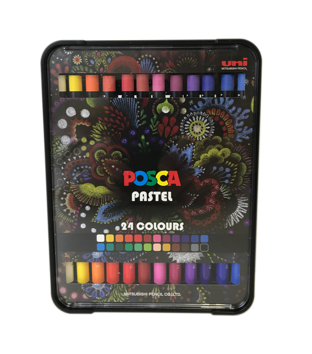 POSCA Pastels offer a soft, blendable and expressive way to sketch and paint! These soft touch wax pastels are available in 24 vivid colors and are water-resistant. Each pastel measures 4-3/5" long with a 1/4" diameter and is wrapped in a paper sleeve. This 24-Color Set includes one each of the POSCA Pastels in a durable hard-shell case.