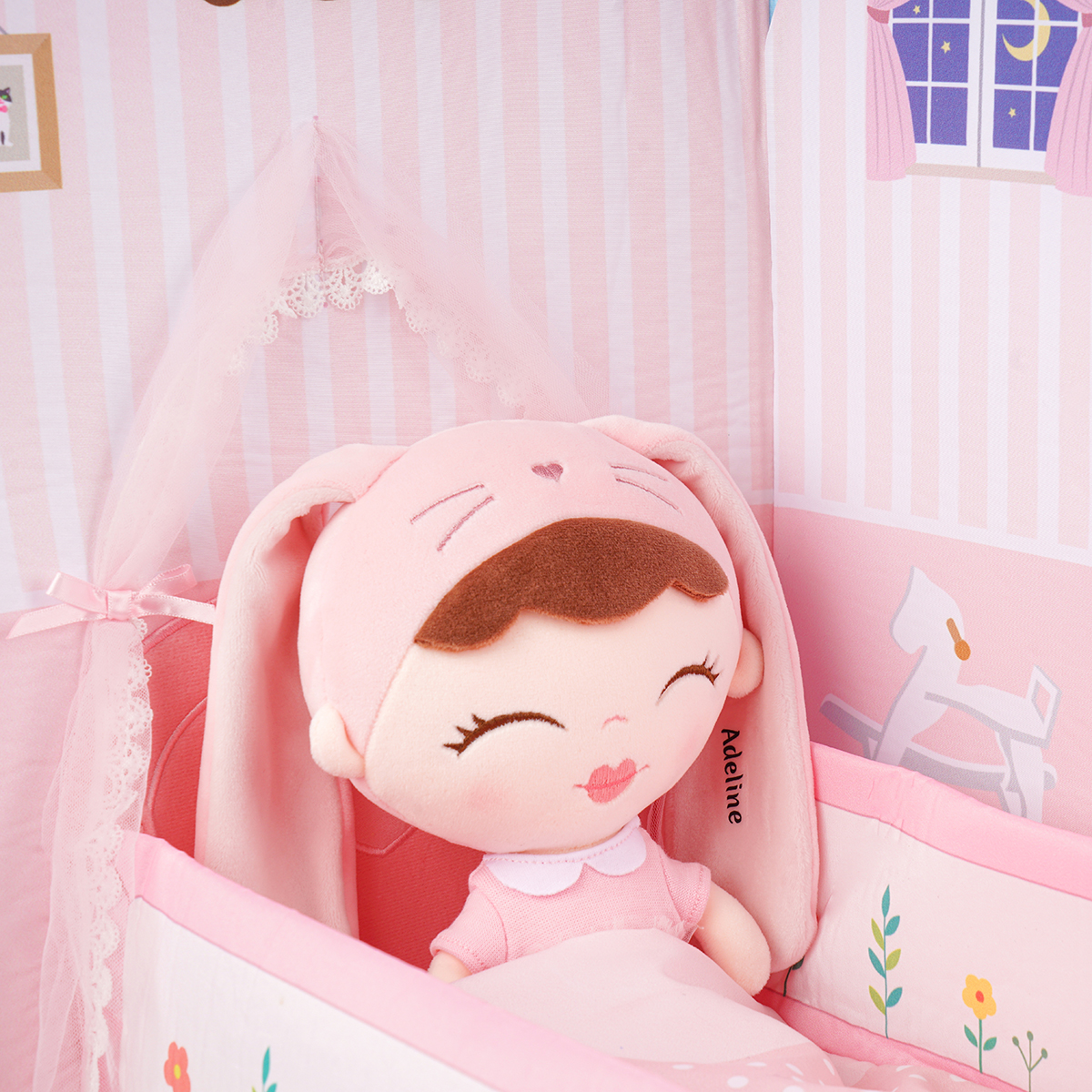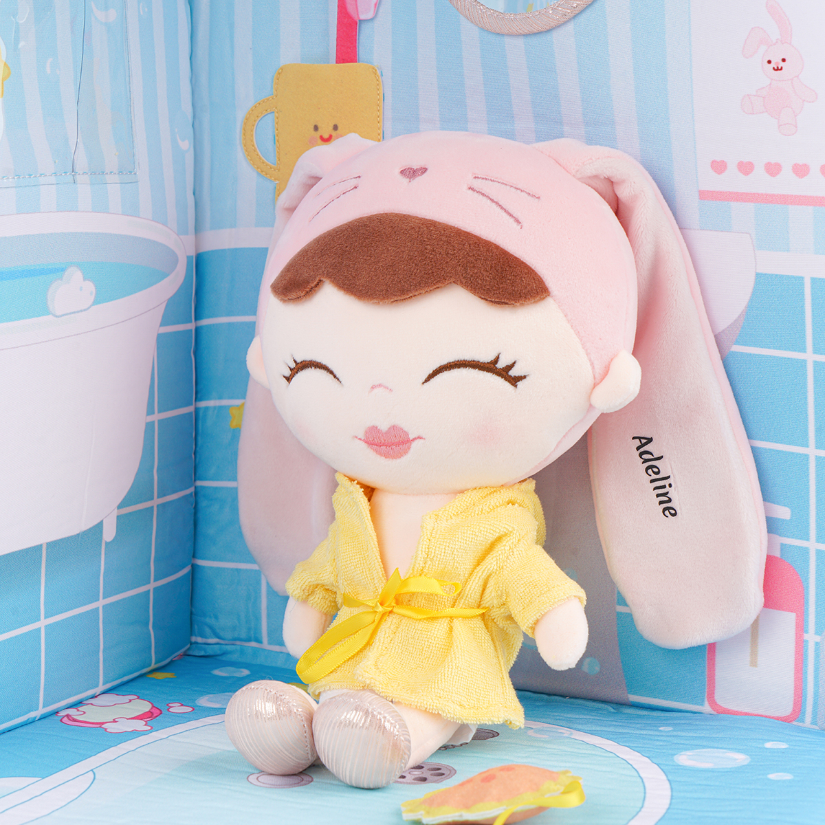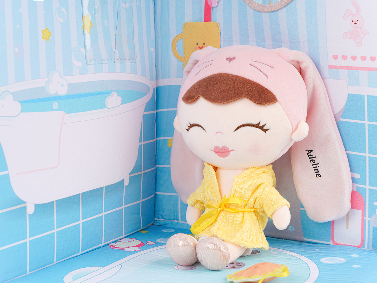 The decoration of the bedroom and bathroom is very exquisite. The bedroom has a wardrobe door and a bed that can be opened, and the rabbit toy can be placed on the bed. In addition, pajamas and other toiletries are also stored on the bathroom wall.