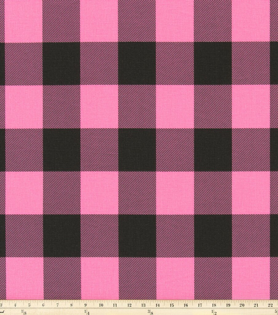 • Premier Prints Upholstery Fabric Buffalo Check Polish Pink Black