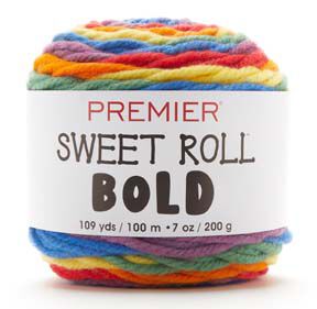 Sweet Roll Bold is a curated collection of bold, self-striping colors. This yarn creates wide stripes in a regular repeat, creating all the excitement of working with multiple colors, without the chore of weaving in ends. Weight Category: 6. Content: 100% Acrylic. Put up: 7oz/200g, 109yd/100m. Gauge: 10sx14r=4in/10cm on size US Size 11 (8 mm) knitting needles. Suggested crochet hook size: US Size M-13 (9 mm). Dyelotted: we try but are not always able to match dyelots. Machine Wash Warm, Do Not Bleach, Tumble Dry Low Heat, Do Not Iron, Dry Clean with Solvents. Imported.