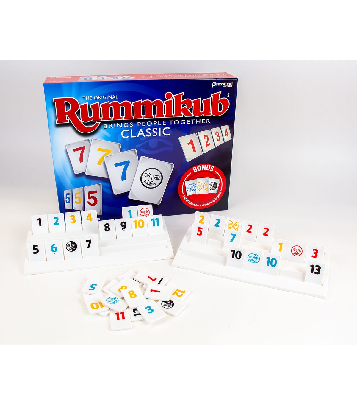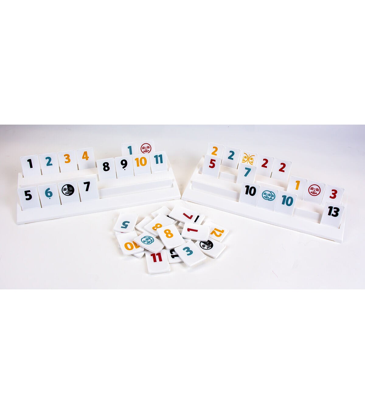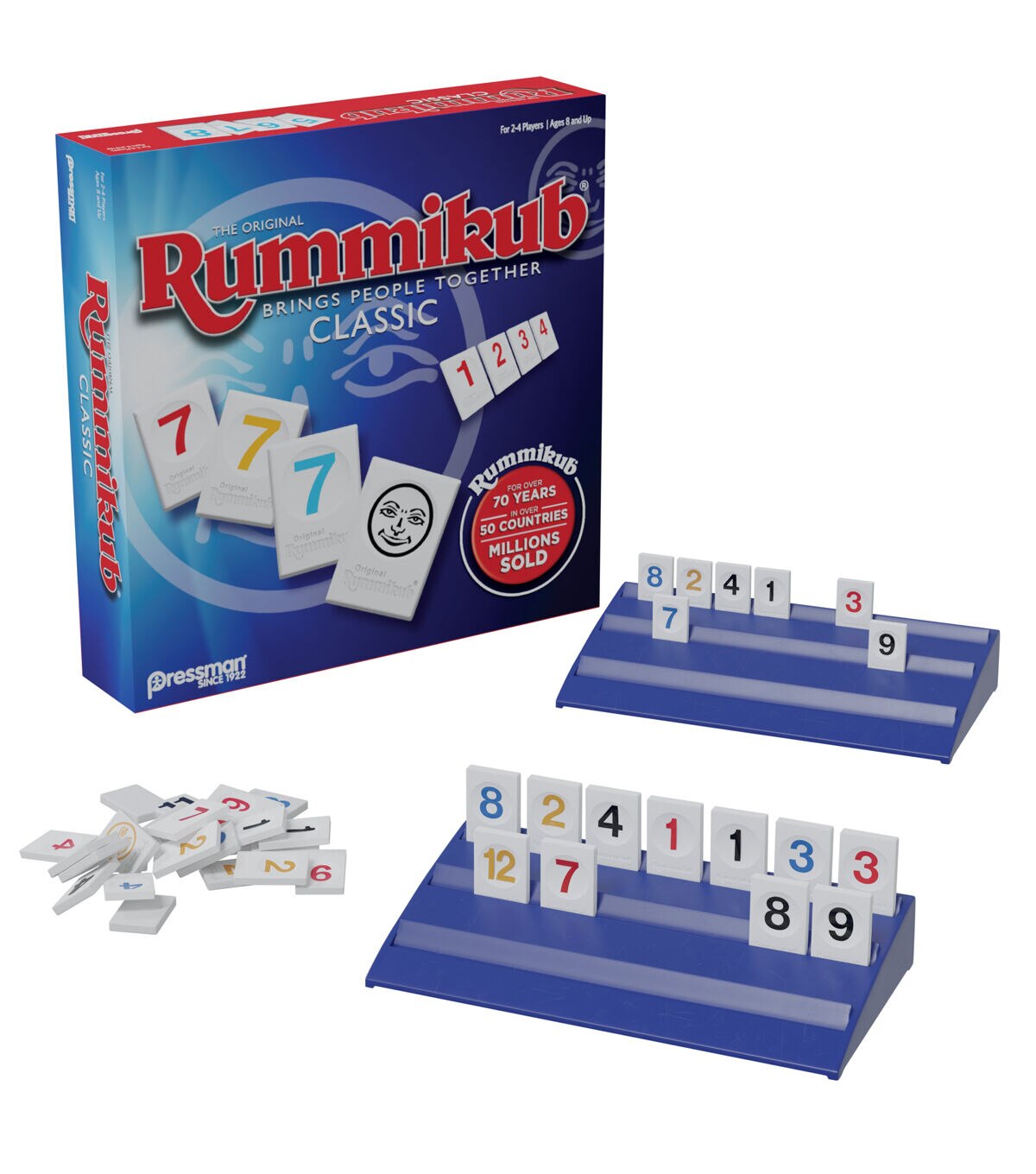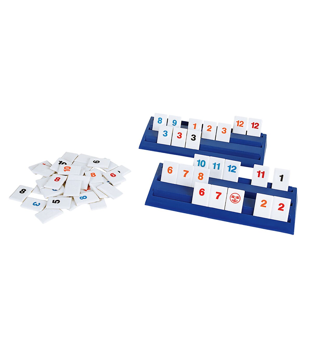 With more than 55 million units sold, Rummikub is one of the world's best-selling and most-played games! It's really no surprise that Rummikub is so popular - it has all the elements that make a great game: it's easy to learn and fast moving, it's different every time it's played, it combines luck and strategy, and it changes quickly so every player has a chance to win until the very end. Players take turns placing numbered tiles in runs (consecutive numbers of the same color) and groups (three or more of the same number in different colors), rummy style. It's easy to learn, but packed with strategy - the "board" changes all the time as players adjust the tiles on the table. The Joker tiles add to the fun and can be used as any color or number. Be the first player to play every tile on your rack to win! Reinforces STEM skills like sequencing, pattern recognition and planning. Rummikub includes 106 high-quality plastic tiles, 4 plastic tile-holder racks, and complete instructions. For 2-4 players, ages 8 and up.
