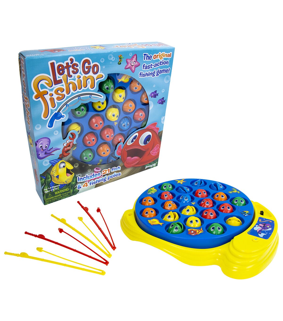 Get ready for some reel fun with Let's Go Fishin', the original version of a well-known and well-loved fishing game that parents will remember playing when they were kids. This classic kid's game teaches hand-eye coordination as players use their mini fishing poles to try to catch the most fish. With a rotating pond and hungry fish that open and close their mouths, Let's Go Fishin' provides fast-paced fishing fun that will lure kids into playing over and over again. Requires 1 C battery (not included).