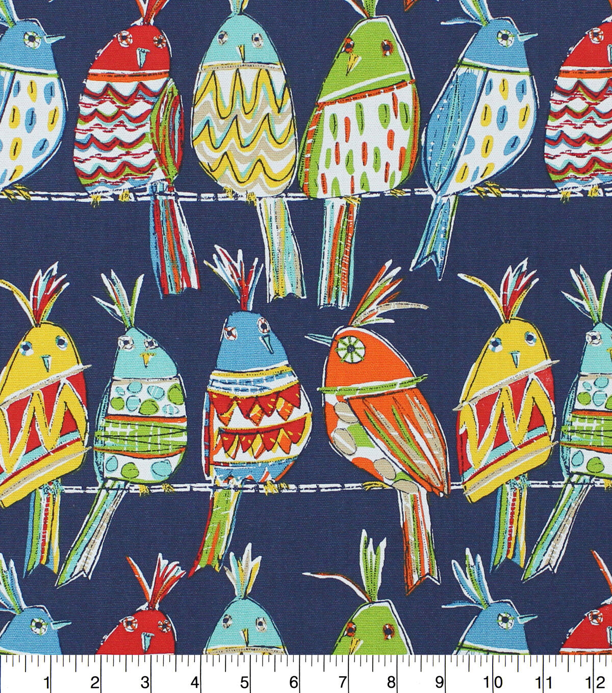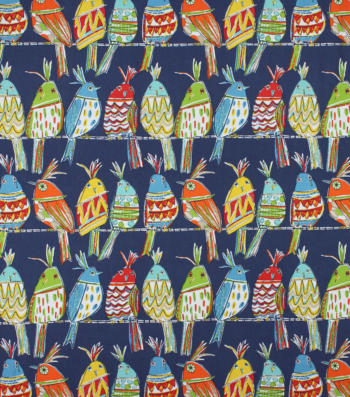 A Whimiscal Novetly Bird Print Of 100% Cotton In A Cute Artisan Drawing With A Blue Background