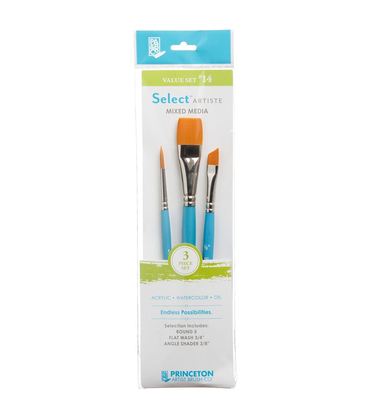 The Princeton Artist Brush Co. Select Artiste Brush Value Set #14 features a variety of assortments of brushes that work well together. These high-quality, short-handled brushes are made to last. With their robin's egg blue colored handles, they will be a beautiful addition to your existing brush collection as they go above and beyond basic brush shapes and sizes.