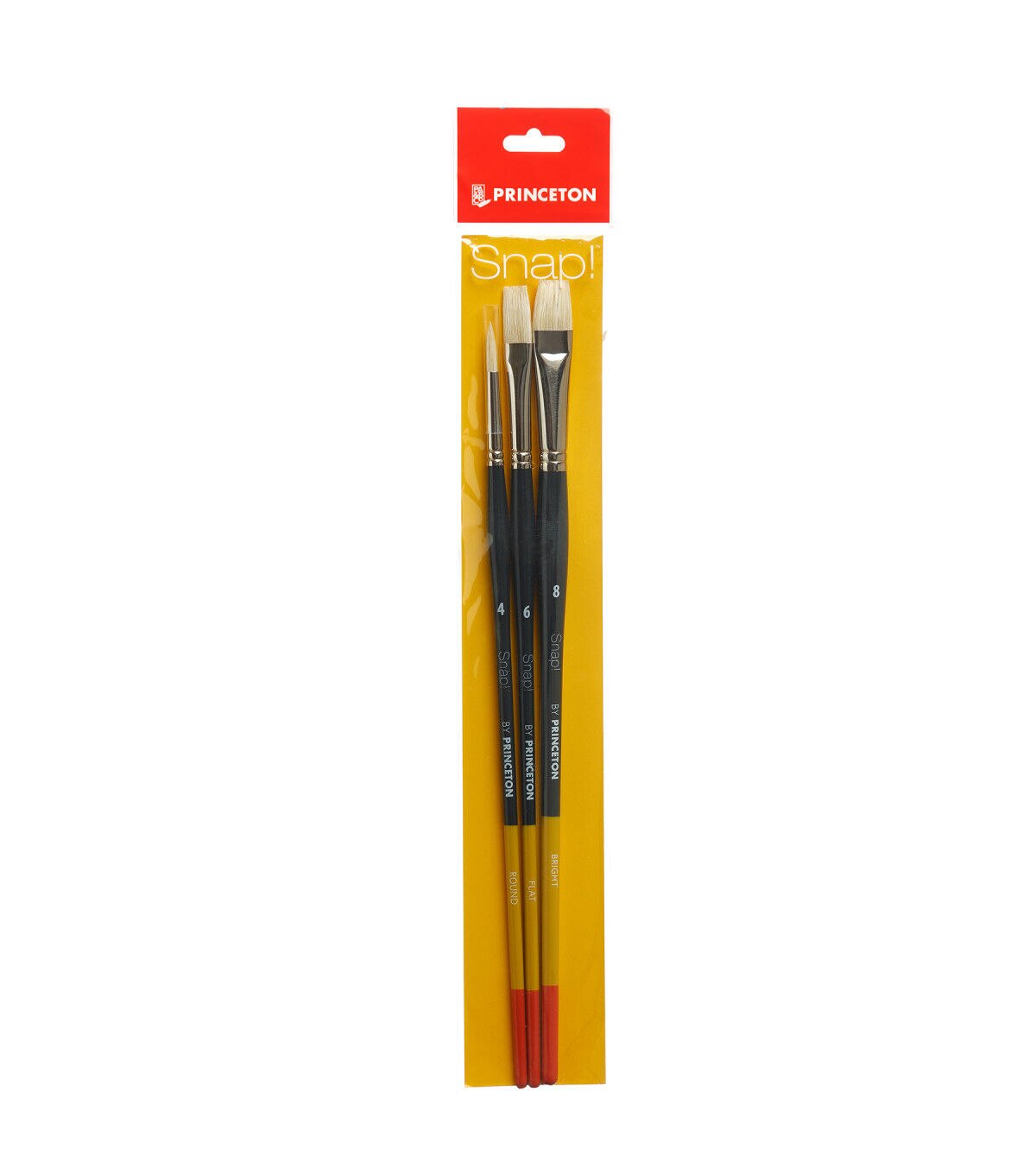A set of three short handled natural bristle brushes ideal for oil and acrylic. The set includes round 4, flat 6 and bright 8 brushes.