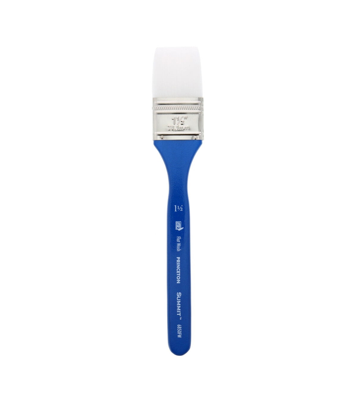 The summit brush is the next generation of white synthetics - it allows for maximum color holding capacity and is great for watercolor, gouache and fluid acrylics. Summit’s blend of hair is stiffer than a traditional watercolor brush, but not as stiff as Umbria or Catalyst which makes it just right for fluid applications.