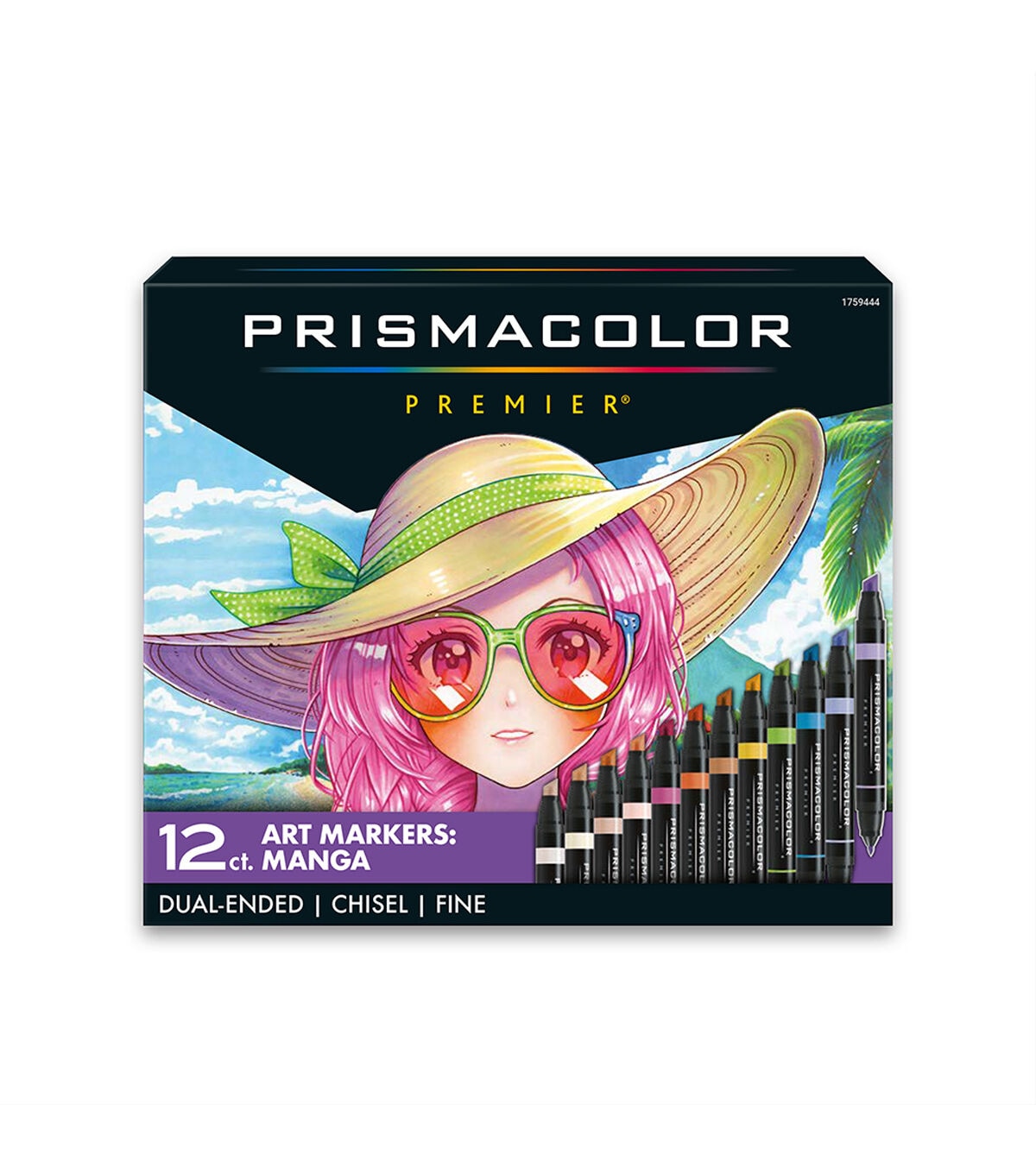 Lay down the precise marks you want in 12 Manga-perfect colors with Prismacolor Premier Dual-Ended Art Markers. These Prismacolor markers feature a fine tip on one end and a large chisel tip on the other, so you can quickly flip between adding precise details and applying full color coverage.