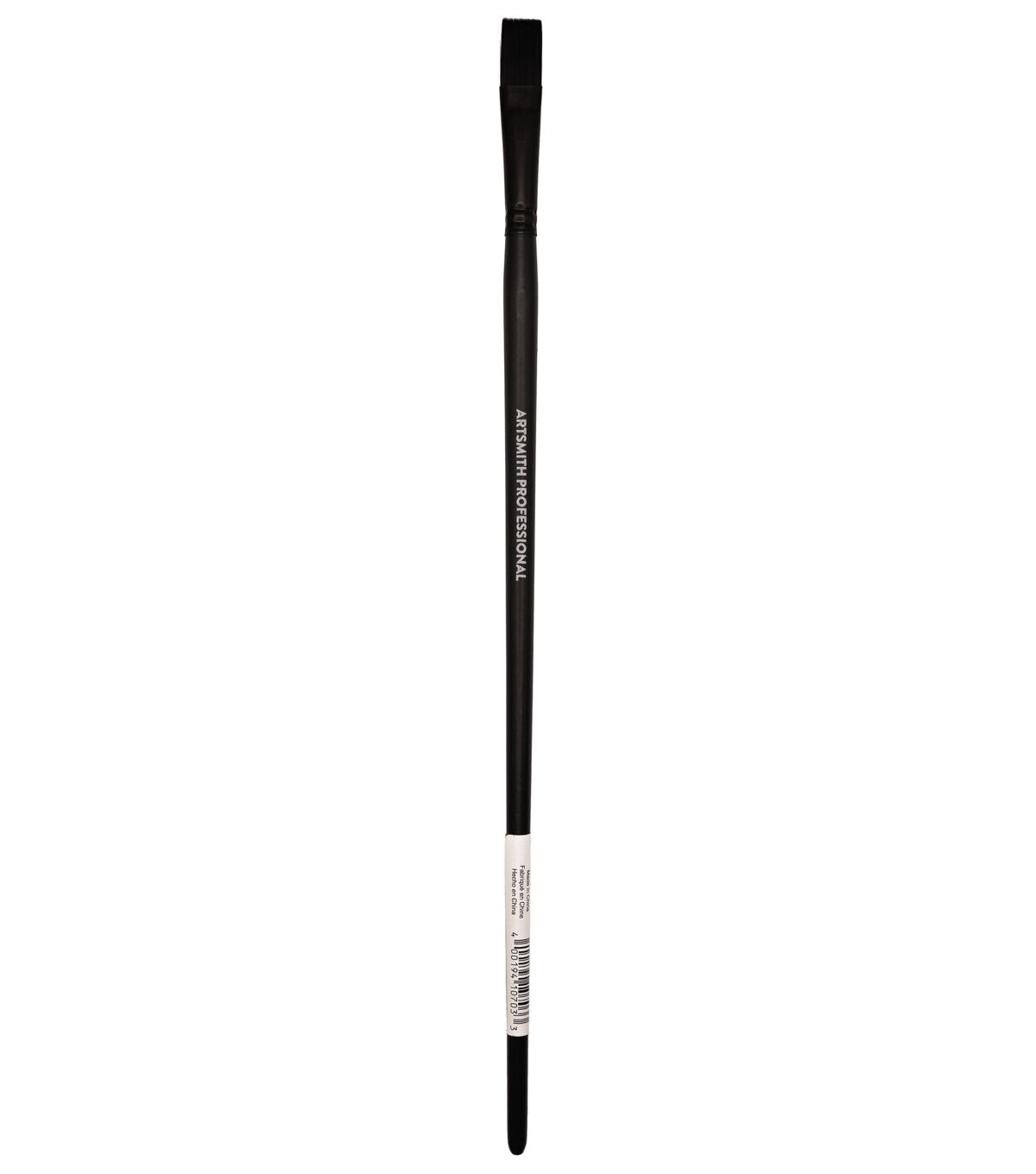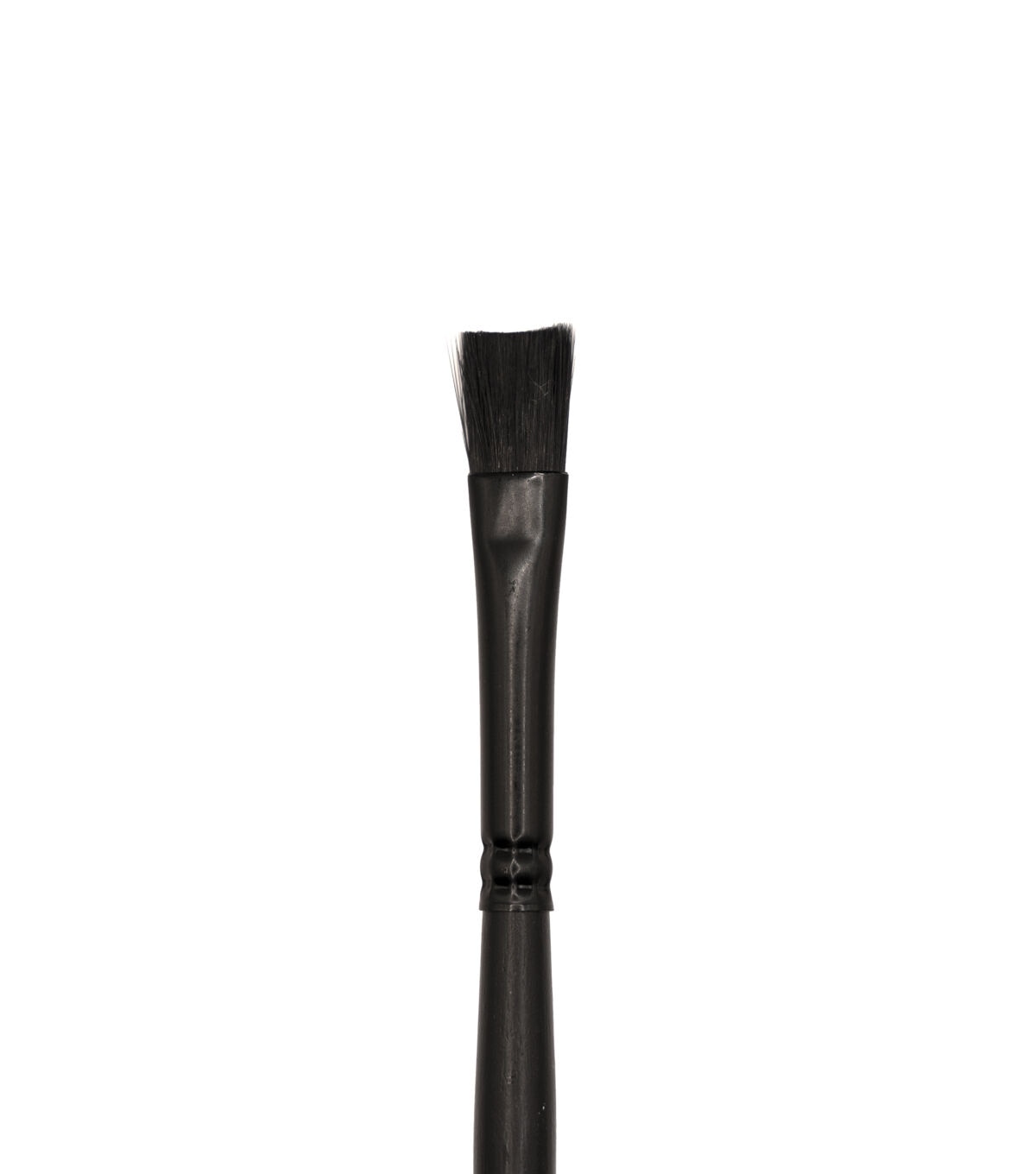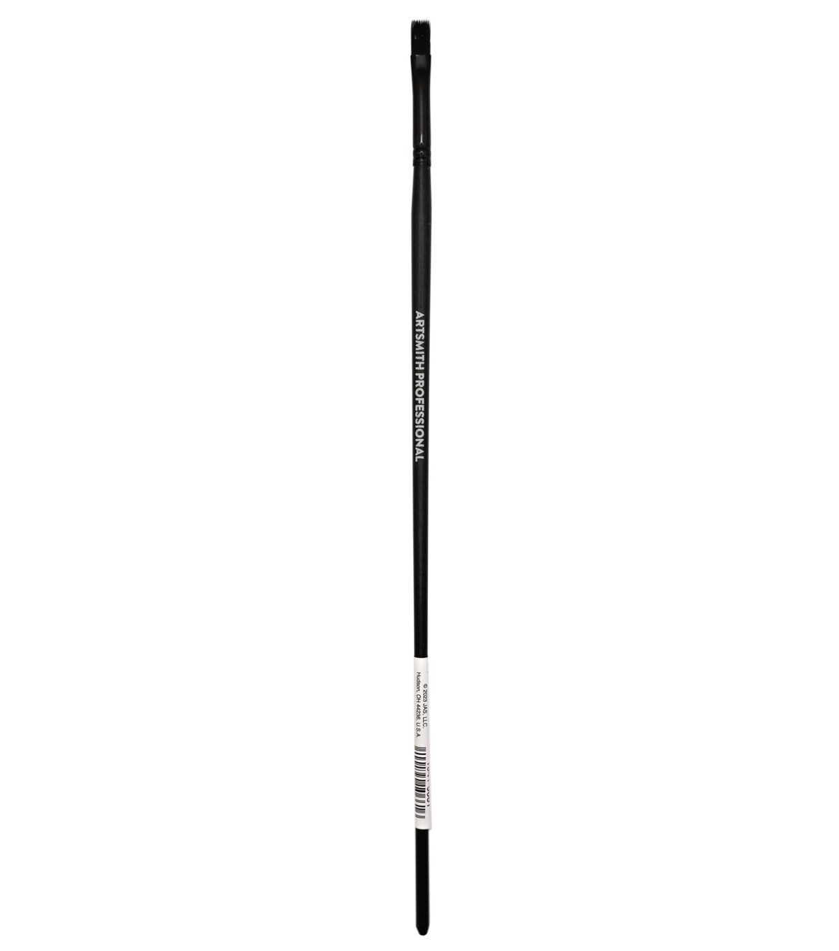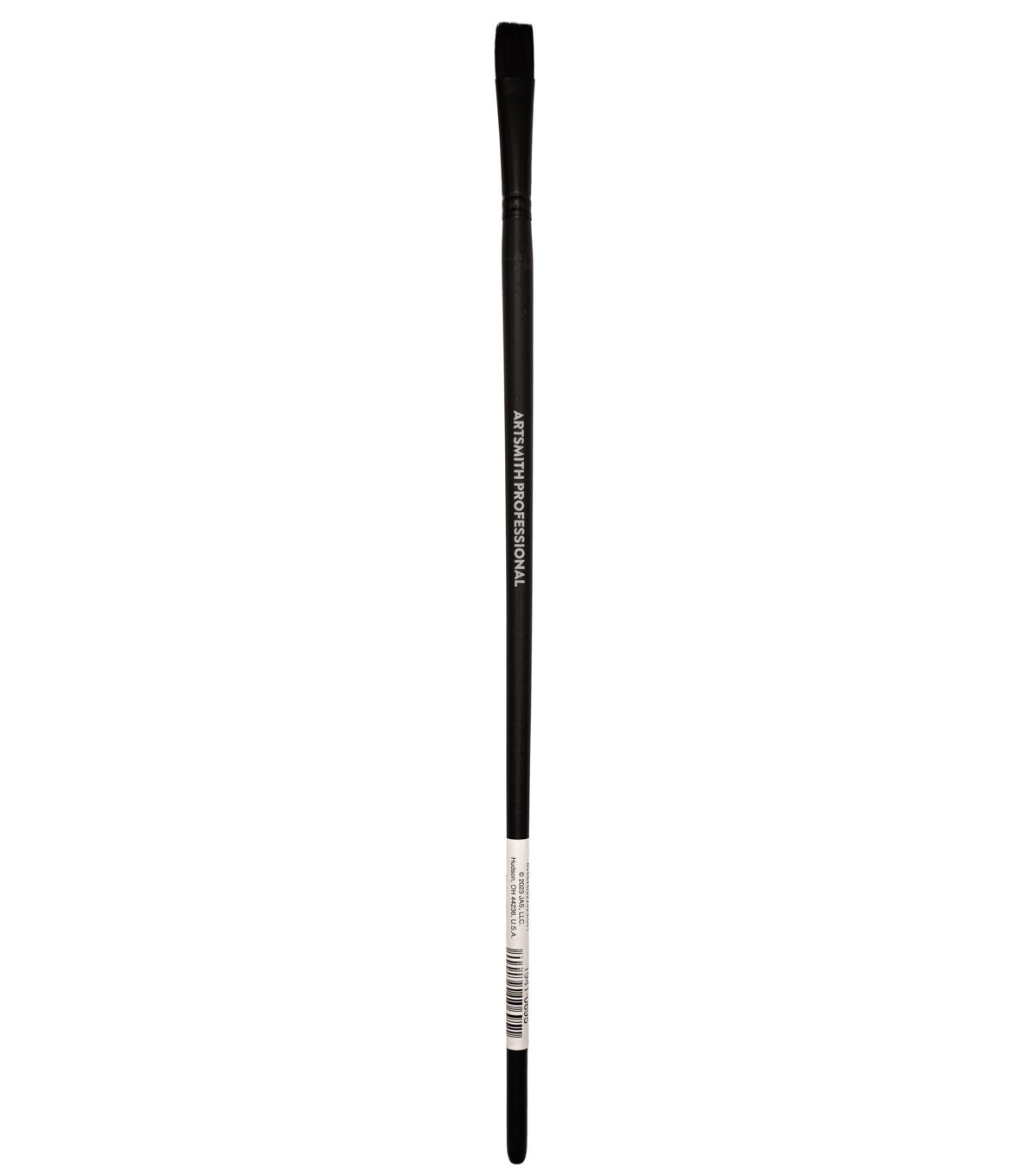 This sleek, all black, professional brush from Artsmith features multi-diameter black taklon with matte black plated brass ferrule, and a kiln-dried wooden handle. Ideal for use with acrylic, watercolor, or oil paint!